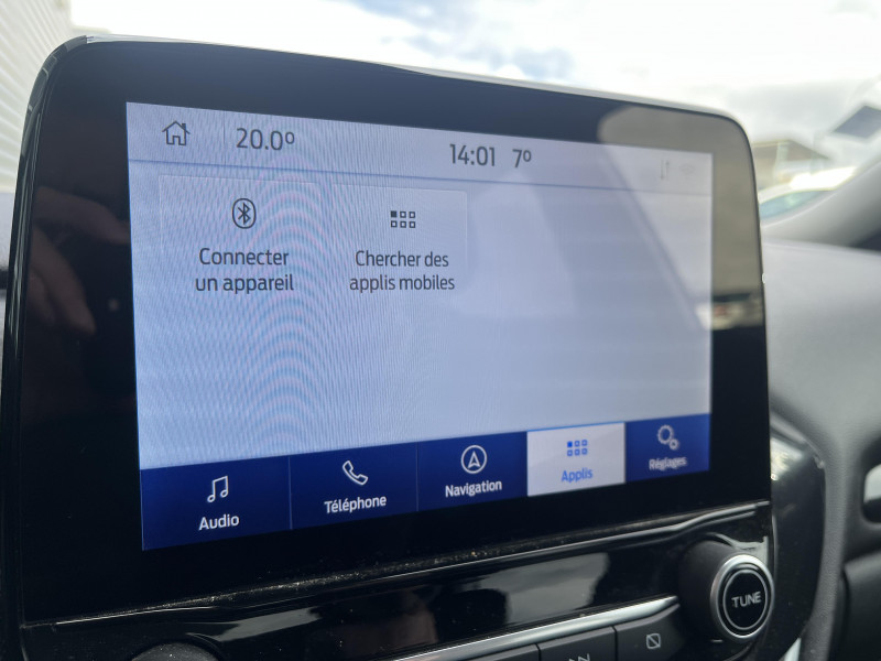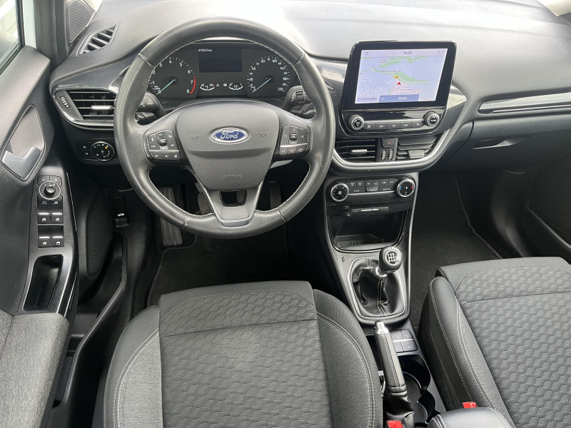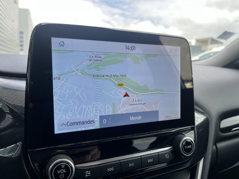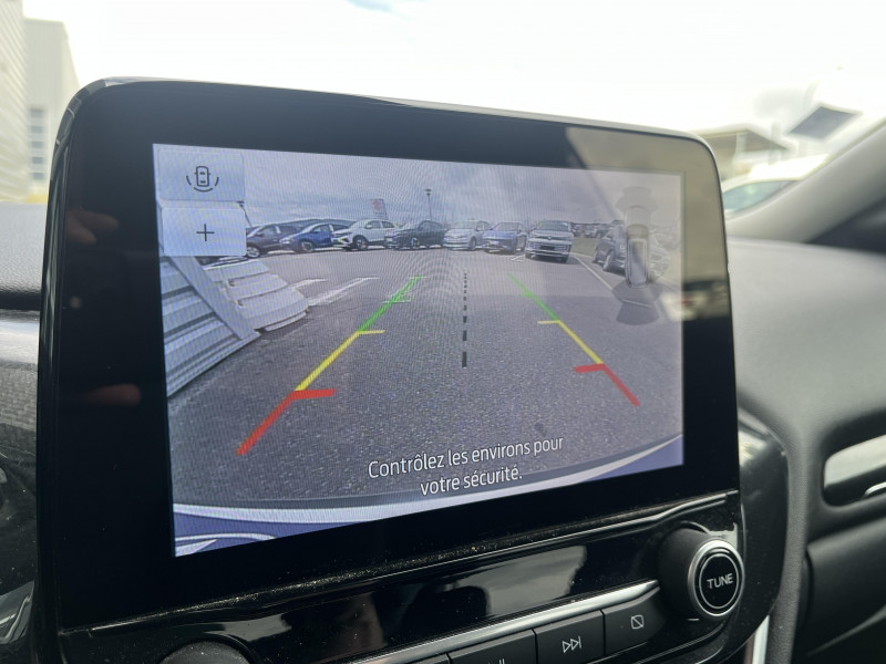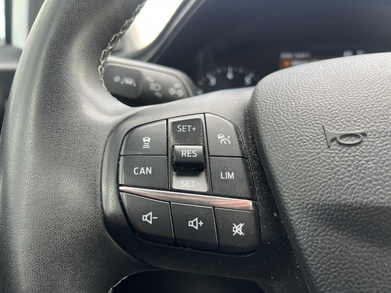 Aide au maintien dans la voie avec détection des bas-côtés / Feux de route intelligents - Commutation automatique des feux de route aux feux de croisement / Jantes acier 17" avec enjoliveur structuré 8 branches (pneus 215/55 R17) / Navigation avec Système audio Ford SYNC3 avec écran tactile 8", commandes vocales, 2 ports USB, alerte contresens, compatible AppLink, Apple CarPlay et Android auto, 6 hauts-parleurs / 3ème appui-tête AR / 5 Modes de conduite sélectionnables (normal, eco, sport, faible adhérence, trail) / Becquet couleur carrosserie / Combiné d'instrumentation TFT couleur 4.2" avec Ecomode / Console centrale avec accoudoir et rangements / Contours de vitres noir brillant / Disques de frein AV / Désactivation de l'airbag passager / Eclairage d'ambiance intérieur / Environnement noir / FordPass Connect avec modem embarqué et fonction E-Call / Grille de calandre avec barres horizontales et contour façon chrome / Levier de frein à main Sensico / Levier de vitesse Sensico / Limiteur de vitesse intelligent (affichage instantané des limitations de vitesse sur le tableau de bord) / Pare-chocs couleur carrosserie / Phares antibrouillard AV avec fonction éclairage des angles / Rétroviseurs extérieurs couleur carrosserie électriques, dégivrants et rabattables électriquement avec éclairage d'approche / Système de prévention de collision avec freinage post-collision et détection piétons / Système MyKey (seconde clé programmable) / Tapis de sol AV avec surpiqûres / Trappe Easy Fuel / Volant 3 branches Sensico