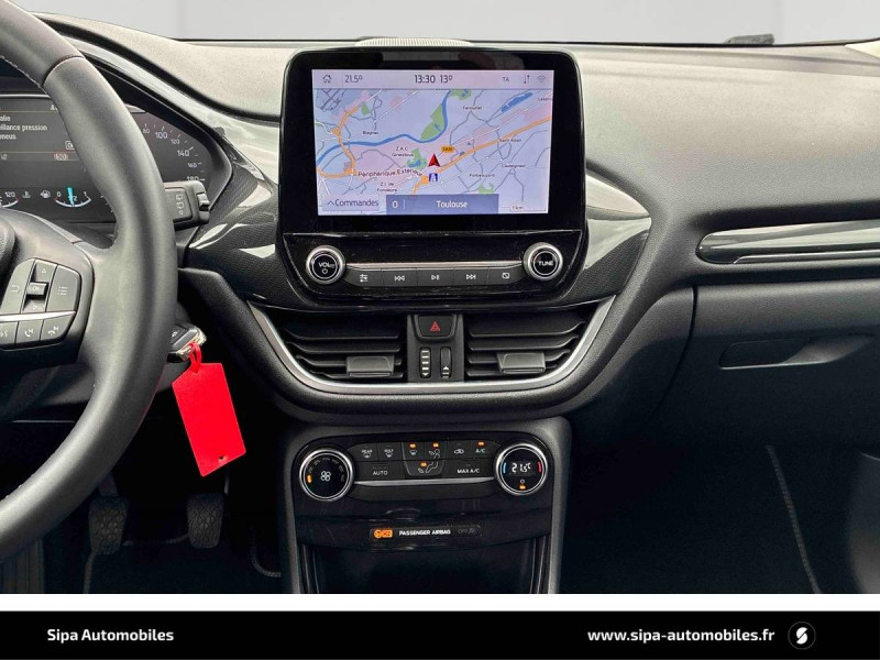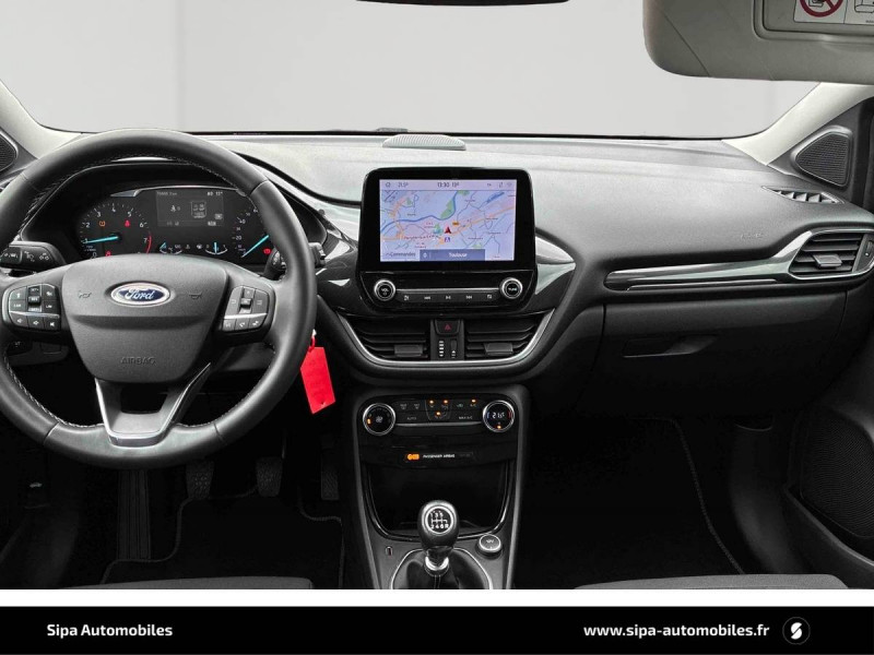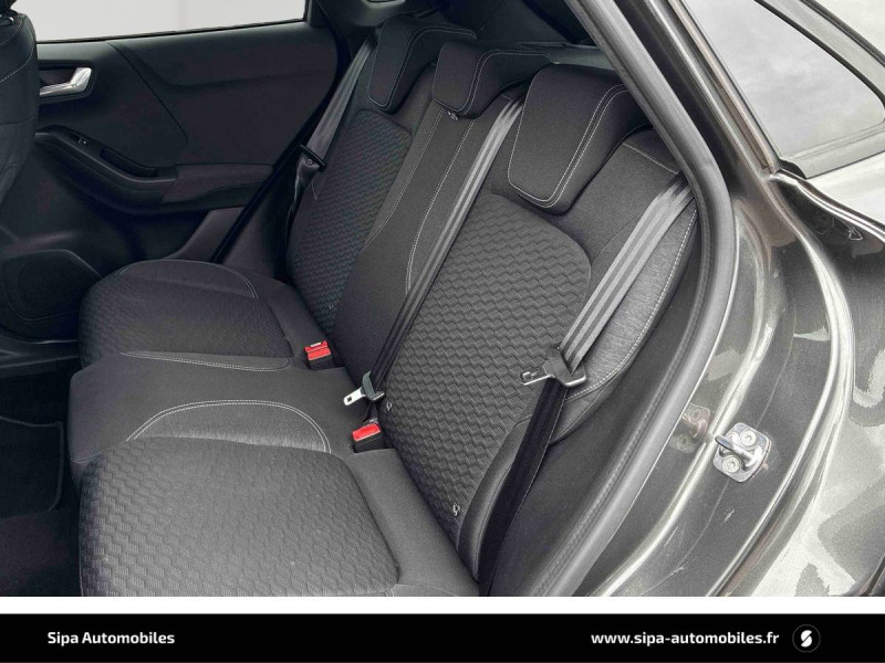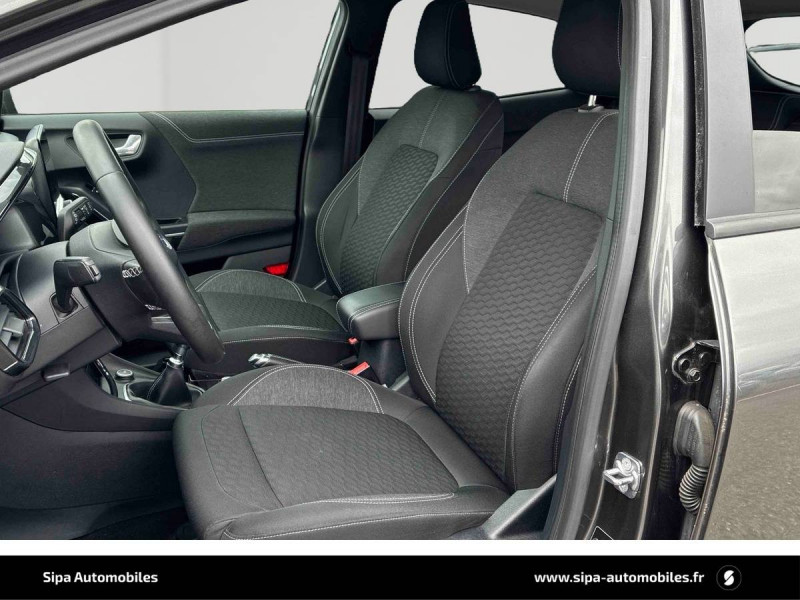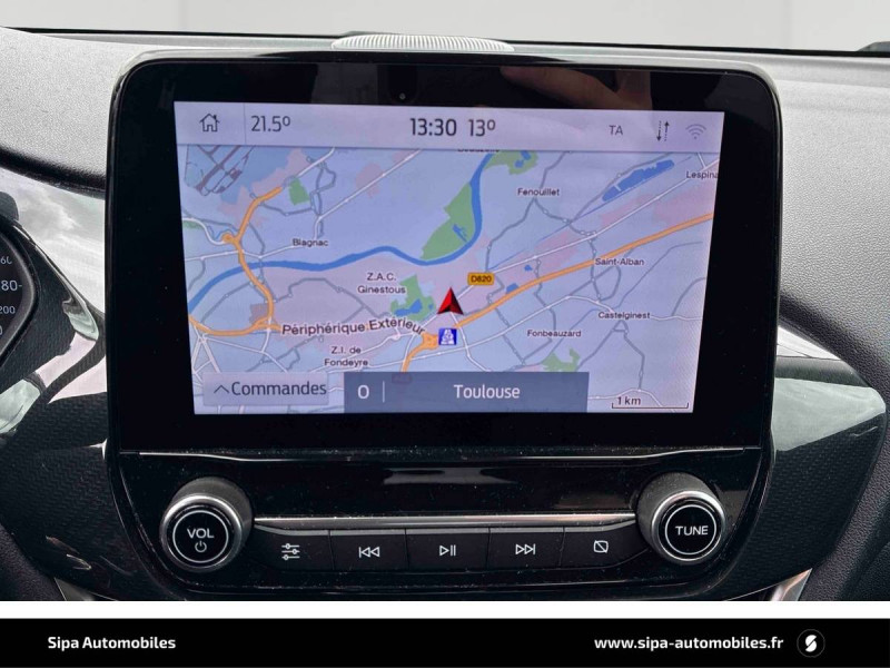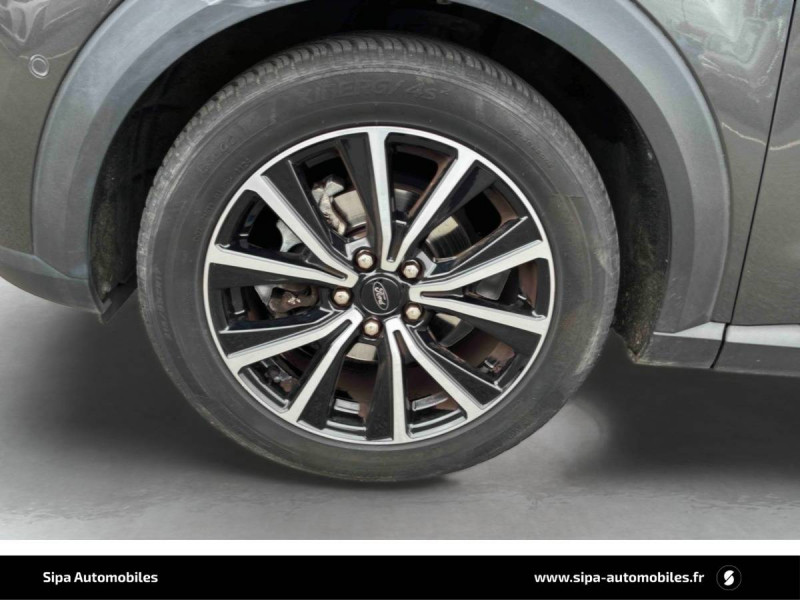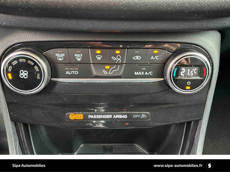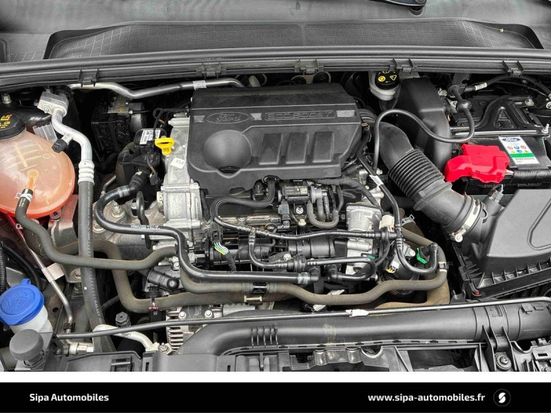 3ème appui-tête AR / 5 Modes de conduite sélectionnables (normal, eco, sport, faible adhérence, trail) / Aide au maintien dans la voie avec détection des bas-côtés / Becquet AR couleur carrosserie / Combiné d'instrumentation TFT couleur 4.2" avec Ecomode / Console centrale avec accoudoir et rangements / Contours de vitres noir brillant / Désactivation de l'airbag passager / Eclairage d'ambiance intérieur / Environnement noir / Feux de route intelligents - Commutation automatique des feux de route aux feux de croisement / FordPass Connect avec modem embarqué et fonction E-Call / Frein AV à disques / Grille de calandre avec barres horizontales et contour façon chrome / Jantes alliage 17" 10 branches finition Absolute Black (pour pneus toutes saisons 215/55 R17) / Kit de réparation pneumatique / Levier de frein à main gainé de simili cuir / Levier de vitesse gainé de simili cuir / Limiteur de vitesse intelligent (affichage instantané des limitations de vitesse sur le tableau de bord) / Pack Sécurité Intégrale / Pare-chocs couleur carrosserie / Phares antibrouillard AV avec fonction éclairage des angles / Plancher de coffre ajustable / Plaques de seuil de portes AV Titanium / Rétroviseurs extérieurs couleur carrosserie, chauffants, réglables et rabattables électriquement avec rappel de clignotant intégré / Sellerie Mixte noire tissu Tire on Casual et simili cuir Salerno / Siège passager massant réglable en hauteur avec soutien lombaire / Système audio Ford SYNC3 avec écran tactile 8", commandes vocales, 2 ports USB, alerte contresens, compatible AppLink, Apple CarPlay et Android auto, 7 hauts-parleurs / Système de navigation Europe et points d'intérêts Michelin / Système de prévention de collision avec freinage post-collision et détection piétons / Système MyKey (seconde clé programmable) / Tapis de sol AV/AR avec surpiqûres / Trappe Easy Fuel / Volant 3 branches en cuir