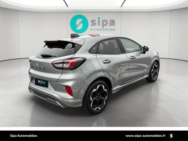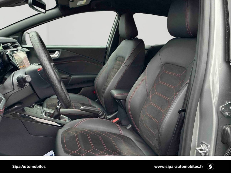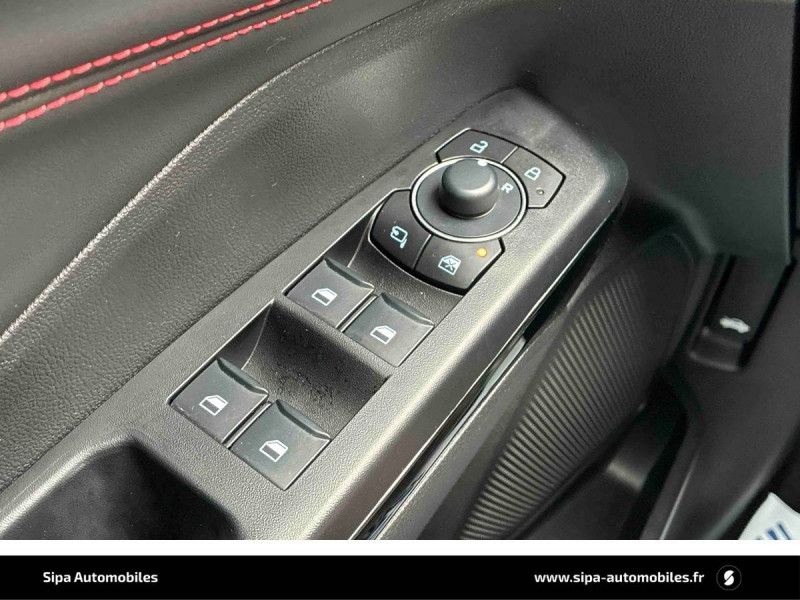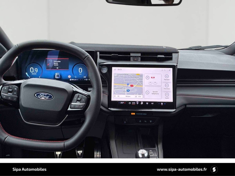 Alerte de véhicule en approche / Arches de roue couleur carrosserie / Assistance à la conduite économique / Assistant de pré collision avec freinage post collision / Avertisseur de conduite à contre-sens / Badge ST-Line / Combiné d'instrumentalisation numérique 12.8" / Console centrale avec accoudoir coulissant / Ecrous Antivol / Freins à disques AV / Grille de calandre Active / Jupes latérales couleur carrosserie avec enjoliveur de porte argenté / Kit carrosserie ST-Line (bouclier AV sport et diffuseur AR) / Kit de réparation des pneumatiques / Megabox (compartiment de rangement sous le plancher du coffre) / Modem 5G / Pack Confort Hayon mains-libres, Rétroviseurs extérieurs chauffants, rabattables électriquement avec répétiteurs de clignotant intégré et éclairage d'approche, Sièges AV avec support lombaire et siège passager réglable en hauteur, Accès et démarrage mains-libres, Recharge Smartphone sans fil / Pédalier Aluminium / Planche de bord en vinyle Premium / Plaques de seuil de portes en aluminium avec logo / Pneus eco 215/50 R18 92H / Pommeau de levier de vitesse en aluminium teinté noir / Pommeau de levier de vitesse gainé cuir avec surpiqures rouges / Projecteurs LED avec feux de jour et commutateur de feux de route automatique / Rétroviseur intérieur électrochrome / Rétroviseurs extérieurs couleur carrosserie, électriques, chauffants, rabattables électriquement avec répétiteur de clignotant avec projection du logo en éclairage d'accueil / Siège conducteur à réglage manuel 2 positions / Siège conducteur à réglage manuel 4 positions / Siège passager avec support lombaire / Sièges AV en tissu avec surpiqûres rouges / Suspension Sport / Système de contrôle de la trajectoire et de la stabilité avec assistant au freinage d'urgence et aide au démarrage en côte / Système d'infodivertissement SYNC4 avec audio B&O, l'écran tactile 12'' et commandes vocale, 2 ports USB, navigation, Apple CarPlay et Android auto, 10 HP, 575 watts / Tambour AR / Tapis de sol AV Premium