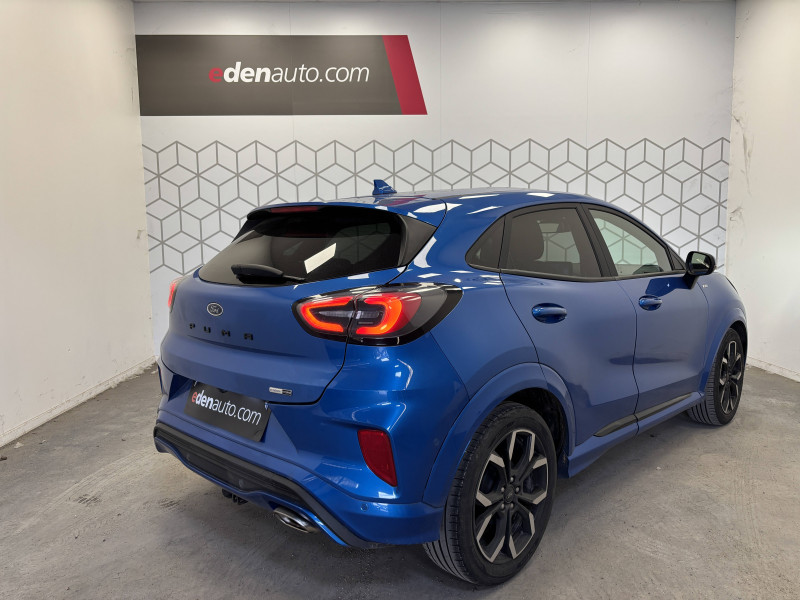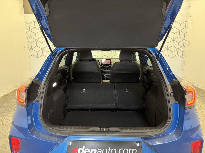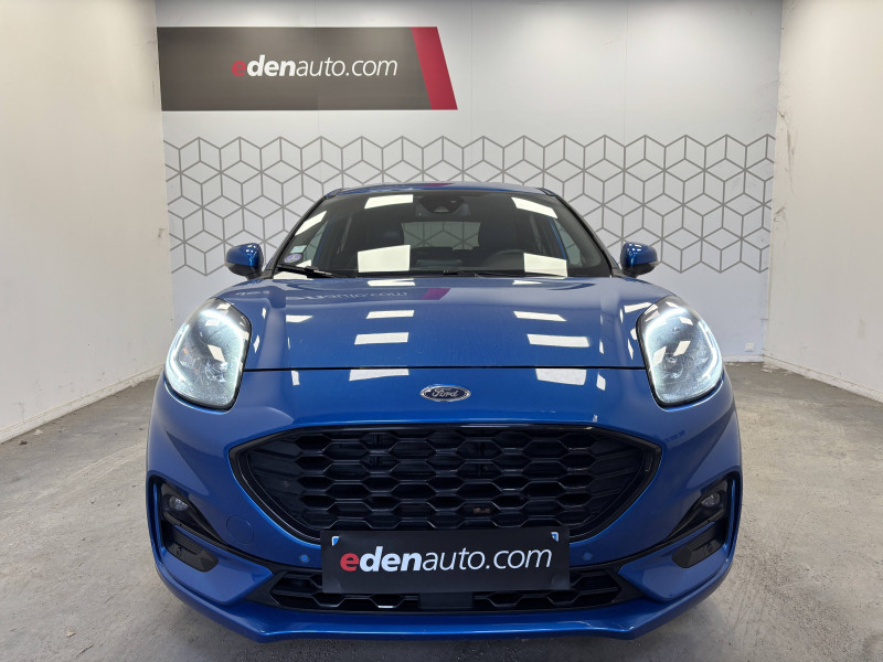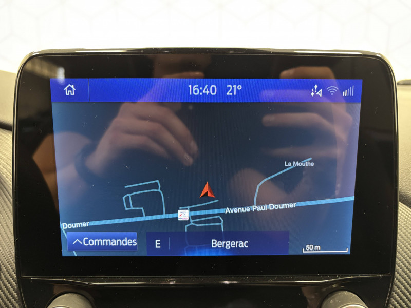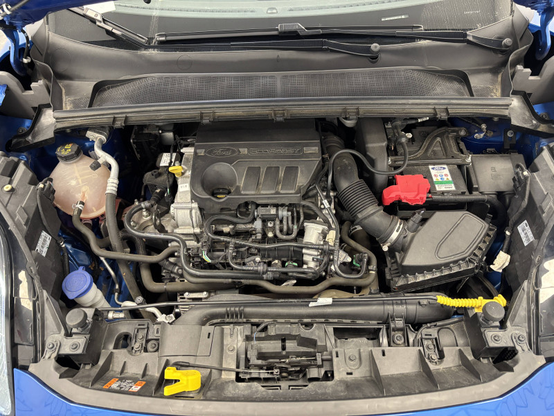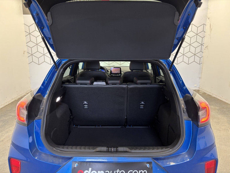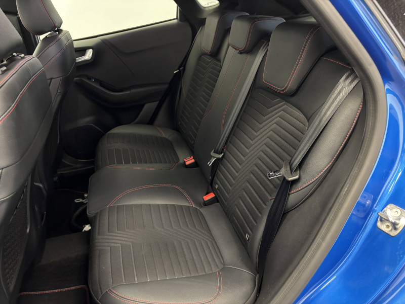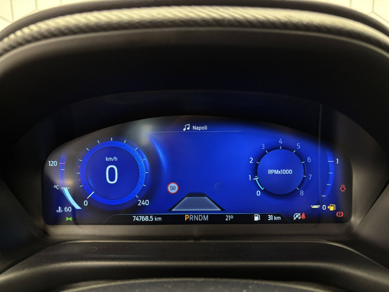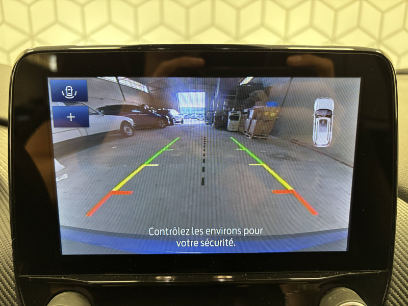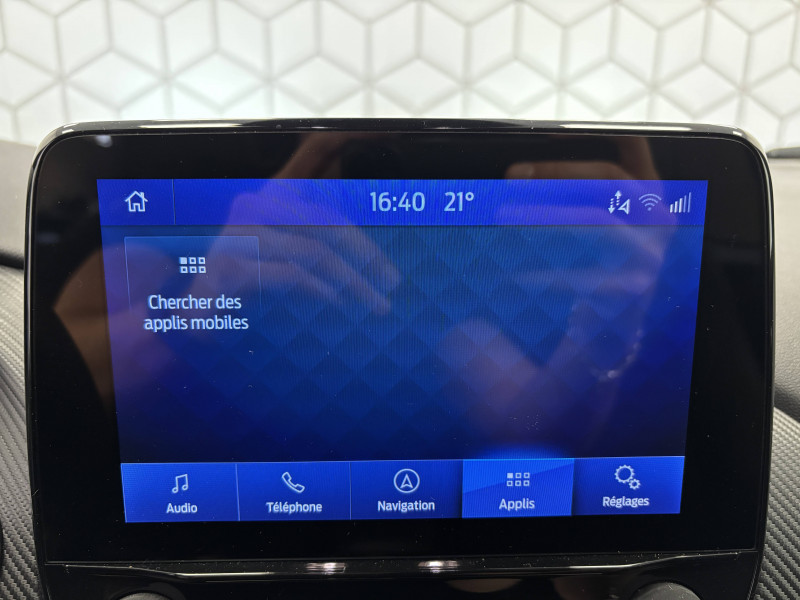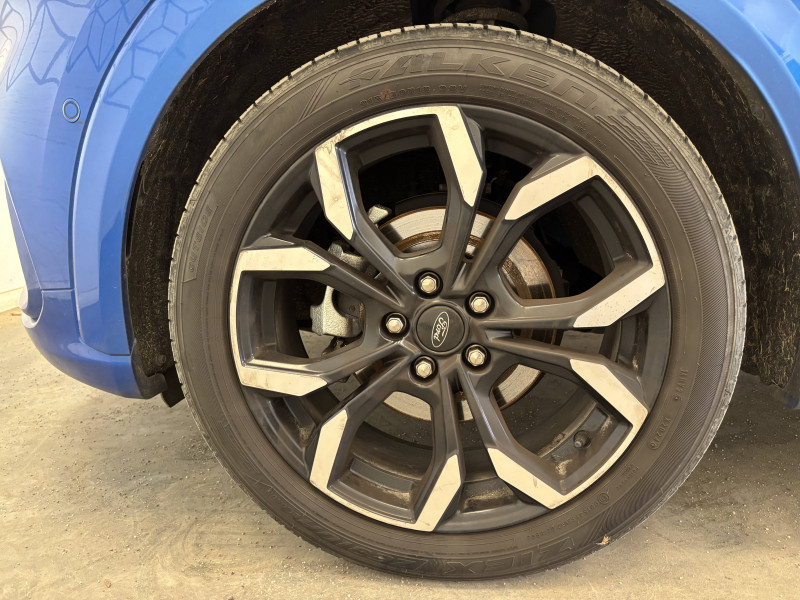 3ème appui-tête AR / 5 Modes de conduite sélectionnables (normal, eco, sport, faible adhérence, trail) / Aide au maintien dans la voie avec détection des bas-côtés / Badges extérieurs ST-Line / Becquet AR couleur carrosserie / Bouton de démarrage "Ford Power" / Combiné d'instrumentation numérique 12.3" avec Ecomode / Console centrale avec accoudoir et rangements / Désactivation de l'airbag passager / Disques de frein AV / Eclairage d'ambiance intérieur / Environnement noir / Feux de route intelligents - Commutation automatique des feux de route aux feux de croisement / FordPass Connect avec modem embarqué et fonction E-Call / Grille de calandre ST-Line / Jantes alliage 18" 5x2 branches finition Black Matt (pour pneus 215/50 R18 92H) / Kit de carrosserie ST-Line / Kit de réparation pneumatique / Levier de frein à main Sensico / Levier de vitesse Sensico / Limiteur de vitesse intelligent (affichage instantané des limitations de vitesse sur le tableau de bord) / Phares antibrouillard AV avec fonction éclairage des angles / Rétroviseur intérieur électrochrome / Rétroviseurs extérieurs couleur carrosserie électriques, dégivrants et rabattables électriquement avec éclairage d'approche / Sellerie Mixte tissu noir Tire on Casual avec renforts lateraux en Sensico Salemo et surpiqures rouges / Siège passager réglable en hauteur avec soutien lombaire / Sortie d'echappement chromée / Suspension Sport / Système audio B&O avec SYNC3 avec écran tactile 8", commandes vocales, 2 ports USB, AppLink, Apple CarPlay et Android auto, 10 HP / Système de navigation Europe et points d'intérêts Michelin / Système de prévention de collision avec freinage post-collision et détection piétons / Système MyKey (seconde clé programmable) / Tapis de sol AV/AR avec surpiqûres / Trappe Easy Fuel / Volant à méplat 3 branches ST-Line avec surpiqûres