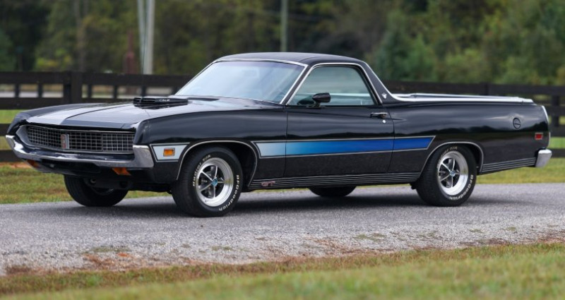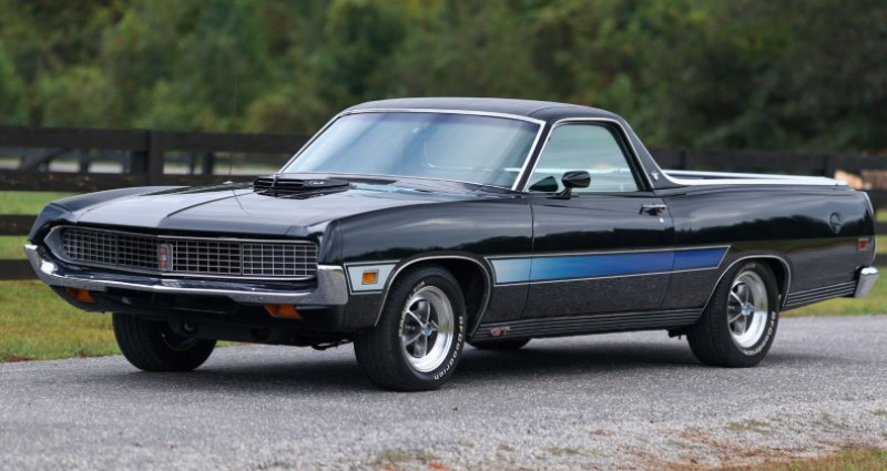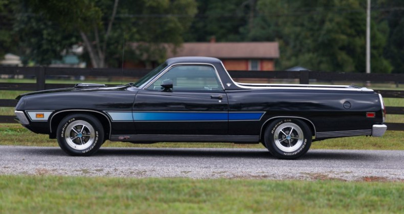- Année : 1971 - Marque : Ford - Modèle : Ranchero GT - Moteur : 351ci Cleveland V8 - Transmission : Automatique à 3 vitesses (Cruise-O-Matic) - Couleur : Noir (refinie) - Équipement : Roues 15 Magnum 500-style, toit en vinyle noir, freinage assisté, direction assistée, climatisation, système audio Kenwood, scoop hood shaker, lit de litière de litière en spray, composants d'échappement Flowmaster - Travaux : Restauration cosmétique antérieure, travaux en 2010 (peinture du corps, remplacement de la porte latérale gauche, réparation de la panneau de côté droit, suppression de dents, remplacement de la bande de litière de litière, réchromage des pare-chocs) - Kilométrage non mentionné - État : Désusure sur le siège banc et la moquette. Provenance : North Carolina. Disponibilité : environ 7 semaines, clés en main. 42 000 € tout compris (importation, taxes, procédure d'immatriculation). Annonce publiée le 07/12/2025