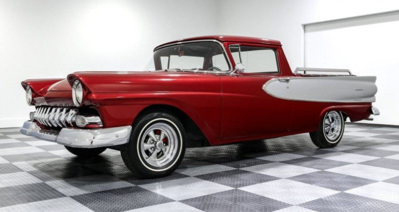 - Marque : Ford - Modèle : Ranchero - Année : 1957 - Couleur extérieure : Marron - Couleur intérieure : Noir - Type de carrosserie : Pick-up - Transmission : FMX Automatique - Moteur : 352 Ford FE - Kilométrage : 92 064 miles - Roues : 15 pouces Cragar SS. Provenance : Texas. Disponibilité : environ 7 semaines, clés en main. 29 000 € tout compris (importation, taxes, procédure d'immatriculation). Annonce publiée le 20/12/2025