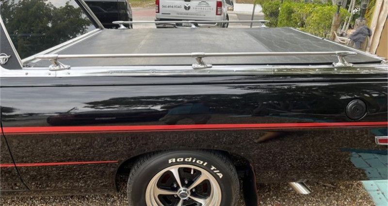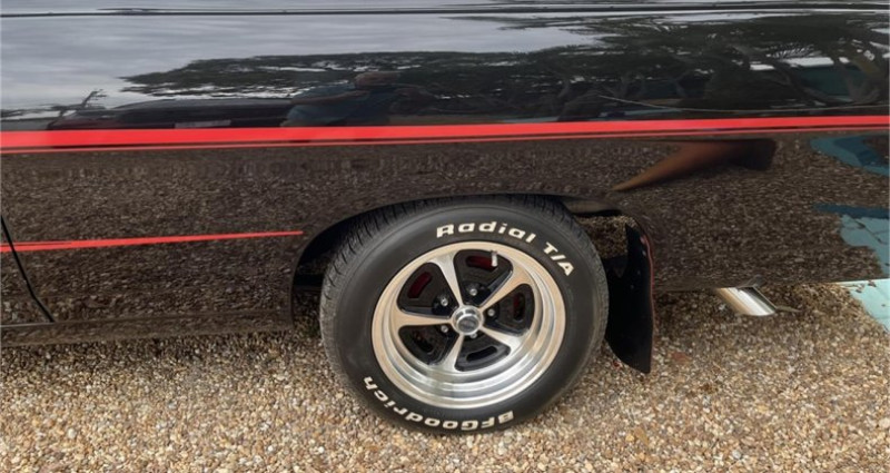 - Couleur extérieure : Noir avec bandes rouges - Intérieur : Cuir noir, sièges baquets, console centrale avec tiroir à boissons, ceintures Tanaka, climatisation - Peinture personnalisée, bois de la camionnette, capot, ailes, bandes latérales chromées, ailes de vue arrière - Jantes : 15 pouces American Racing noires avec inserts noirs, pneus BFGoodrich Radial T/A avec lettres blanches levées, 195/60 avant, 215/60 arrière - Moteur : 351 Windsor V8, 250 chevaux, 355 lb-ft de couple, 9, 5:1 compression, carburateur à deux barres - Boîte de vitesses : Automatique Cruise-O-Matic (C4) à trois vitesses - Suspension arrière : Amortisseurs arrière à air - Freins : Freins à disque avant, freins arrière - Odomètre : 26 636 miles - Plaque d'identification : Peinture Champagne Gold, 66C - Ranchero GT, 6A - Noir cuir, 17D - Avril 17, 1970, 16 - Philadelphie, PA, 3.25 gears avec différentiel à verrouillage limité, transmission X - FMX automatique, 16 pouces de longueur d'axe, connaissances sur des imperfections : rouille superficielle sur le châssis. Provenance : Florida, USA. Disponibilité : environ 7 semaines, clés en main. 35 500 € tout compris (import, taxes, procédure d'immatriculation). Annonce publiée le 27/12/2025