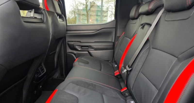 Garantie de 48 mois à compter de la première immatriculation. Équipements spéciaux : bandes décoratives, pack Raptor. Autres équipements : troisième feu stop, éclairage d’ambiance avant (LED), système audio 106, système d’échappement avec clapet, rétroviseurs extérieurs rabattables électriquement, rétroviseurs extérieurs réglables électriquement, rétroviseurs extérieurs chauffants et réglables couleur carrosserie, clignotants intégrés aux rétroviseurs extérieurs, éclairage de bas de porte dans les rétroviseurs extérieurs, répartition électronique du freinage (EBD), systèmes d’assistance à la conduite : système de précollision, assistance au maintien de voie, reconnaissance des panneaux de signalisation, suspension à contrôle électronique, vitres électriques avant et arrière, FordPass Connect. eCall, Tapis de sol haut de gamme, Transmission automatique - Type : 10R60 (10 vitesses), Porte-gobelets avant, Hayon Easy Lift (Pick-up), Déverrouillage électrique du hayon (sans verrouillage), Lunette arrière chauffante, Chargeur à induction pour appareils mobiles, Rétroviseur intérieur à atténuation automatique, Carrosserie : Plateau, Double cabine, Climatisation automatique bizone, Tableau de bord numérique 12 pouces, Extensions d'ailes, Calandre noire, Protection de benne, Volant chauffant, Moteur EcoBoost 3.0L 215 kW, Phares antibrouillard à DEL, Écran couleur SYNC Off-Road, Pack Off-Road, Frein de stationnement électrique, Pack Jantes 19 pouces, Empattement 3270 mm, Système de surveillance de la pression des pneus, Pack Sièges arrière 15, Faibles émissions selon la norme Euro 6d, Faibles émissions selon la norme Euro 6e, Sélecteur de vitesses rotatif (Sélecteur électronique), Commandes sur la console de toit, Bavettes arrière, Bavettes avant, Bas de caisse avec marchepieds, Pack Sécurité 3, Siège Pack 9, Sellerie cuir/daim, Pare-soleil gauche avec miroir, Pare-soleil droit avec miroir, Convertisseur 220 V, Différentiel à glissement limité (essieu arrière), Différentiel à glissement limité (essieu avant), Arceau de sécurité noir (benne de chargement), Système Start/Stop, Pack Technologie 73, Poignées de porte extérieures couleur carrosserie, Protection anti-corrosion du soubassement, Protection anti-gravillons, Vitres arrière teintées, Point d'accès Wi-Fi, Rétroviseur intérieur électrochrome, Capteur de pluie