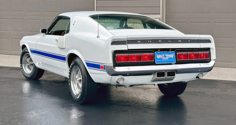 Cet automobile est un Ford Shelby GT350 Fastback de 1969, documenté grâce à un rapport détaillé de Deluxe Marti et inscrit au registre Shelby. Il s'agit de l'une des 129 unités construites en Gris Pastel. Le véhicule est bien conservé et a été soigneusement entretenu dans le sud-ouest des États-Unis. Il a été vendu neuf par Pueblo Ford, Inc. à Tucson en Arizona. Ce modèle est équipé d'un moteur M-Code 351-290 HP reconstruit avec transmission manuelle à rapport rapproché, climatisation, freins à disques, direction assistée, volant en bois, tableau de bord central avec jauges, radio Philco AM, antenne de radio placée à l'arrière, des miroirs sport à double réflecteur, phares antibrouillard, barre de toit sport, sièges arrière en cuir noir d'origine et revêtement intérieur de qualité originale. Il a recréé une peinture d'excellente qualité sur une base/clair de 71, 508 miles avec vérification. L'intérieur, les éléments de décoration, les jauges, les roues en alliage Shelby et les pneumatiques Firestone Wide-Oval 70 Series sont tous d'origine et sont en parfait état. L'habitacle est solide avec des pare-chocs, des pare-brises et des vitres d'origine (sauf vitre frontale). L'habitacle et le sous-châssis ont été détaillés et le système d'épuisement est également d'origine. Les acheteurs sérieux peuvent contacter Mark Young pour obtenir plus de détails à (503) 880-1777. Des photos supplémentaires sont disponibles sur www.nwhouseofhardtops.com. L'entreprise se situe à 10 miles est de Portland et à 30 minutes du Portland International Airport.. Ce descriptif est basé sur les éléments communiqués par le propriétaire avec un traitement assisté. Merci pour votre indulgence en cas de formulation perfectible. Provenance : Oregon. Disponibilité : 7 semaines, clés en main. 110 000 € tout compris (importation, taxes, procédure d'immatriculation). Annonce publiée le 10/11/2025