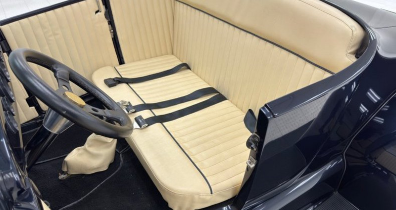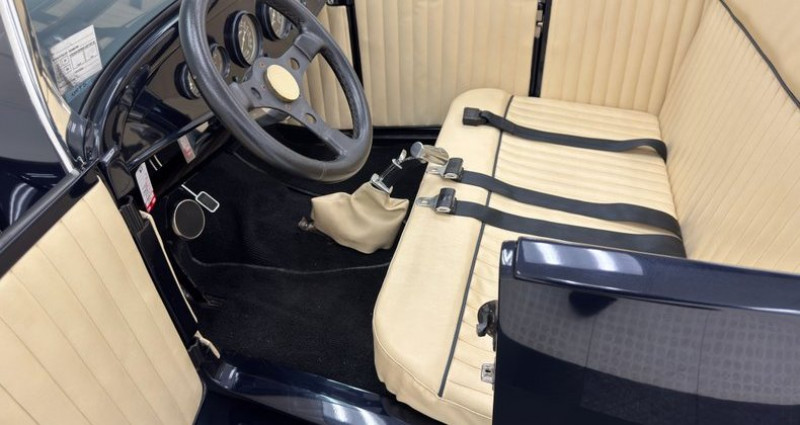 - Année : 1927 - Modèle : Ford Model T Roadster - Couleur extérieure : Bleu deux tons (noir et bleu marine) - Panneaux : Acier, fibre de verre, aluminium - Mise en œuvre : Vince Lily, New Jersey - Kilométrage : 2 435 miles (titre vérifié) - Moteur : 350ci ZZ1 V8 avec aluminium culbuteurs, carburateur Holley 4-barrel, boîte de vitesses TCI TH350 3-vitesse automatique, arbre de transmission Ford 9 avec 4.11 gears et Positraction - Freins : Freins à disque à tous les quatre roues - Intérieur : Cuir Ivory avec bandes bleues, volant à trois branches, tableau de bord d'origine, boîte de vitesses B&M, tapis de sol noir, coffre recouvert de tapis de couleur ivory - Suspension : 4-bar avec feuilles de suspension transversales en avant et en arrière. Provenance : , USA. Disponibilité : environ 7 semaines, clés en main. 39 500 € tout compris (import, taxes, procédure d'immatriculation). Annonce publiée le 03/12/2025