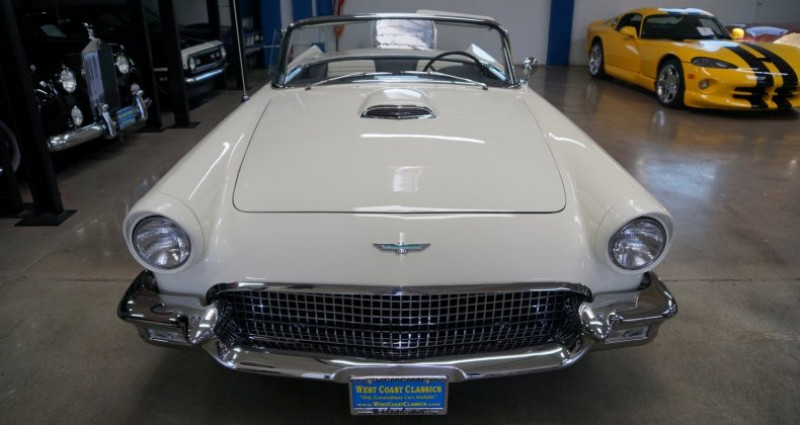 Voici une 1957 Thunderbird F-Code, l'une de seulement 212 construites cette année-là, qui a été restaurée de bout en bout après un travaux de démantèlement complet en 2016. Cette voiture, de couleur blanc et noir, a été appréciée à 325 000 $ après sa restauration, et est équipée d'une transmission automatique Ford-O-Matic ainsi que d'une supercharge McCulloch/Paxton. Cette option était coûteuse lorsque la voiture était nouvelle, elle coûtait plus de 439 $. Cette Thunderbird participe aux compétitions NASCAR et produit plus de 300 chevaux. Elle a été restaurée à l'intérieur comme à l'extérieur, avec des moindres miles sur le compteur. Elle se vend sans prix, mais est estimée à plus de 325 000 $. Elle est équipée de nombreux options, notamment des jantes en chrome, un chauffage, une radio et des ceintures de sécurité. Cette voiture est en excellente condition et sa restauration a été réalisée par un atelier de restauration renommé.. Ce descriptif est basé sur les éléments communiqués par le propriétaire avec un traitement assisté. Merci pour votre indulgence en cas de formulation perfectible. Provenance : California. Disponibilité : 7 semaines, clés en main. 142 500 € tout compris (importation, taxes, procédure d'immatriculation). Annonce publiée le 06/11/2025