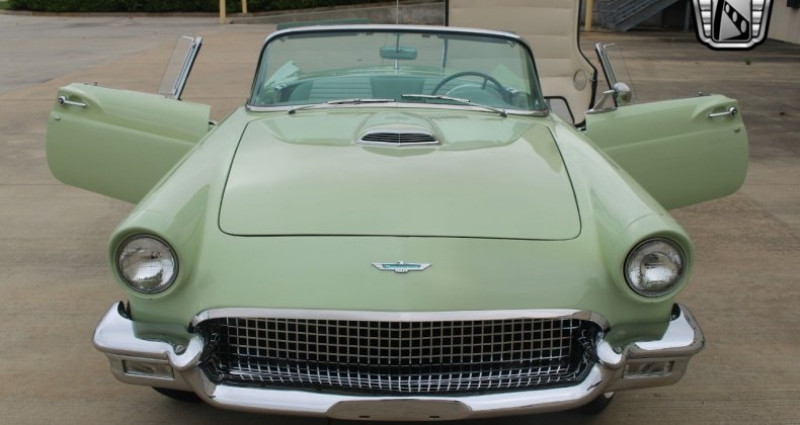 Voici un 1957 Ford Thunderbird convertible en état remarquable que Gateway Classic Cars Houston Showroom offre à la vente. Celui-ci dispose d'un moteur V8 de 312 CID qui fonctionne sans problème et d'une transmission automatique à trois vitesses. Selon son propriétaire actuel, le moteur et la transmission ont été reconstitués par son propriétaire précédent il y a environ 3000 miles, ce qui est confirmé par sa conduite. Les sièges en cuir synthétique sont en très bon état, comme la tapisserie de couleur sage verte. Ce T-Bird de 1957 ne possède pas le toit convertible en tissu, mais il est équipé d'un climatisation Vintage Air, d'une radio AM/FM, d'un siège réglable électriquement, d'un volant à réglage électrique, de pneus blancs larges en rayon, de ceintures de sécurité. Ne ratez pas l'occasion d'acquérir une voiture de collection américaine comme ce 1957 Ford Thunderbird. Les modifications et la restauration semblent avoir été effectuées par quelqu'un qui savait comment travailler sur les Thunderbird.. Ce descriptif est basé sur les éléments communiqués par le propriétaire avec un traitement assisté. Merci pour votre indulgence en cas de formulation perfectible. Provenance : Texas. Disponibilité : 7 semaines, clés en main. 35 000 € tout compris (importation, taxes, procédure d'immatriculation). Annonce publiée le 09/11/2025