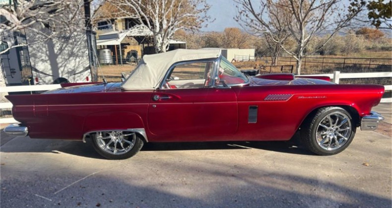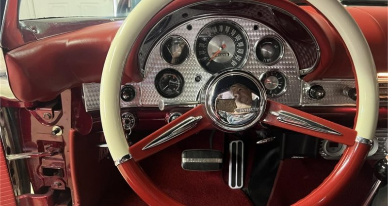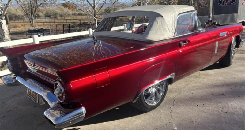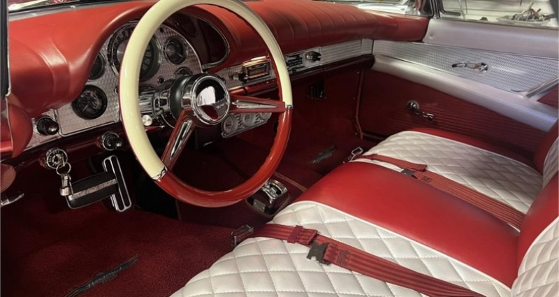 Ce 1957 Ford Thunderbird est motorisé par un moteur V8 de 347ci de cuvre associé à une transmission automatique Ford à quatre vitesses munie d'un surmultipliateur. Peint en rouge et doté d'une capote convertible blanche, ce véhicule de collection a subi une restauration et dispose de nombreuses options de performance, telles que les freins à disques avant et la direction assistée. L'intérieur est upholstéré de vinyle rouge et blanc et se distingue par une manette de direction personnalisée, un système audio à retro-look et une consigne d'instruments incluant un chronomètre et des freins à disques avant. Le moteur de 347ci de cuvre, de marque SBF, est évalué à 425 chevaux et dispose d'un carburateur à quatre barres et d'un alémbic d'Edelbrock. Le véhicule est équipé d'une transmission automatique à quatre vitesses et de freins arrière. Des mises à jour sur l'intérieur ont été apportées, comme le remplacement des sièges pleats Dresden et Starmist par des sièges rouge et blanc quillés. Le véhicule est accompagné d'un toit rigide en blanc retirable avec son stand.. Provenance : Utah, USA. Disponibilité : 7 semaines, clés en main. 81 000 € tout compris (import, taxes, procédure d'immatriculation). Annonce publiée le 13/11/2025