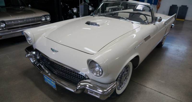 Ce véhicule est un 1957 Thunderbird F-Code, un modèle très rare et collectible fabriqué par Ford. Parmi les 212 exemplaires construits cette année-là, ce Thunderbird est doté d'un moteur V8 de 312/300HP et d'une transmission automatique. Il a subi une restauration complète et minutieuse en 2016, ce qui lui a valu une appréciation évaluée à 325 000 $ peu de temps après. L'extérieur est dans sa teinte d'origine Colonial White, tandis que l'intérieur est revêtu de Raven Black et White. Il est équipé d'une banquette, d'une lumière intérieure de courtoisie automatique, de moquettes rayon, d'un volant à demi-cercle, d'émblemes de Thunderbird en ailes, de vitrages en acier inoxydable, de deux klaxons, de deux échappements, d'un toit souple noir et d'un toit fibre de verre removable. Ce Thunderbird est fourni avec une dossier complet documentant sa restauration complète, depuis la démontage de la carrosserie et de tous les éléments de base jusqu'à la fin. Les couvercles de jantes originales seront inclus avec le véhicule. Le véhicule sera également vendu avec sa feuille d'origine, et non une copie. Ce Thunderbird fonctionne magnifiquement, comme on pourrait le s'attendre après une restauration complète - il faut le conduire pour le connaître pleinement - il ne manque aucun coup de piston et se conduit droit, sans vibrations, sinus ou bruits de roulement - un véritable plaisir de conduire, qui donne le rendez-vous à tout véhicule moderne ! C'est une occasion rare de posséder une Thunderbird de 1957, originale, restaurée et professionnellement restaurée, parfait pour les passionnés de Thunderbird ou de collectionneurs à ajouter à leur collection.. Ce descriptif est basé sur les éléments communiqués par le propriétaire avec un traitement assisté. Merci pour votre indulgence en cas de formulation perfectible. Provenance : California. Disponibilité : 7 semaines, clés en main. 142 500 € tout compris (importation, taxes, procédure d'immatriculation). Annonce publiée le 18/11/2025