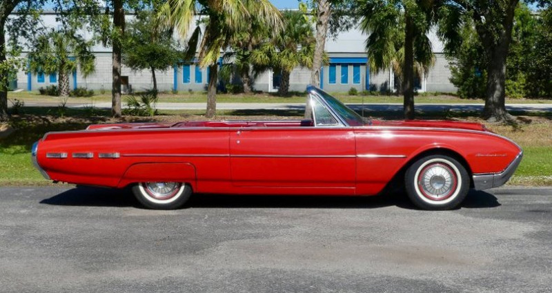 Informations fournies par le vendeur : 1962 Ford Thunderbird, Rangoon Red, white convertible top, 390 CID V8 engine, Cruise-O-Matic 3 speed automatic transmission, power steering, power brakes, power convertible top, tilt-away steering column, red vinyl interior with bucket seats and center console, roomy rear seat. Available for viewing by appointment only at Tampa showroom.. Provenance : , USA. Disponibilité : environ 7 semaines, clés en main. 40 500 € tout compris (import, taxes, procédure d'immatriculation). Nous représentons les acheteurs sur le marché nord-américain et sécurisons chaque étape du processus, de la sélection jusqu’à la mise en circulation en Europe. Basés en France, nous faisons bénéficier nos clients d’un réseau solide de vendeurs professionnels, de collectionneurs privés, d’experts indépendants et de partenaires logistiques présents sur l’ensemble des États-Unis et du Canada. Annonce publiée le 21/11/2025