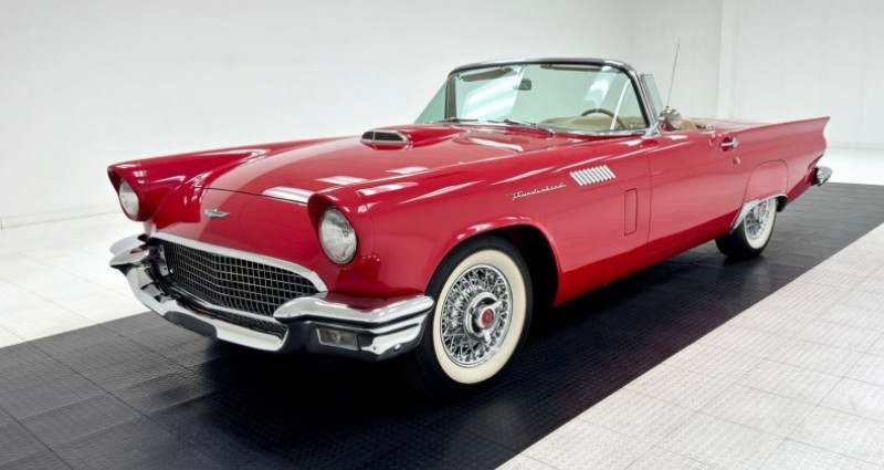 1957 Ford Thunderbird Convertible • Flame Red exterior • Saddle interior • 312ci V8 engine • 3-Speed Automatic transmission • RWD drivetrain • 1, 325 miles (possibly more) • Power Steering, Brakes & AC • Frame Off Restoration • Stock #: 8100 • Chrome wire wheels • Ford-O-Matic • Power drum brakes at all wheels • Coil springs in front, leaf springs in back • AM/FM/Cassette radio • Climate controlled 336, 000-square foot showroom in Morgantown, PA (1-hour west of Philadelphia) • Contact: 610-901-3804 for more information or to see the vehicle in person. Provenance : Pennsylvania. Disponibilité : environ 7 semaines, clés en main. 103 000 € tout compris (importation, taxes, procédure d'immatriculation). Annonce publiée le 25/11/2025