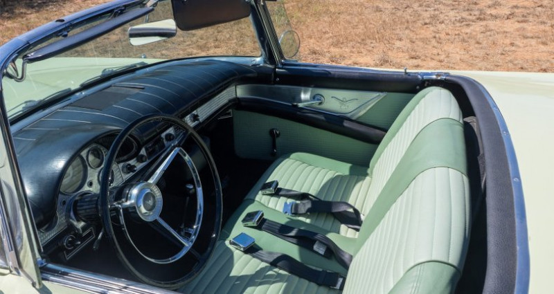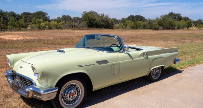 312 CID V8 • Automatic transmission • Rebuilt engine (4000 miles ago) • Black fabric convertible top • Air conditioning • AM/FM radio • Power steering • Power disk brakes • New whitewall radial tires • Seat belts • 1957 distributor with solid-state module • New complete exhaust system • New suspension including leaf springs • 1957 Ford Thunderbird model. Provenance : Texas. Disponibilité : environ 7 semaines, clés en main. 51 500 € tout compris (importation, taxes, procédure d'immatriculation). Annonce publiée le 29/11/2025