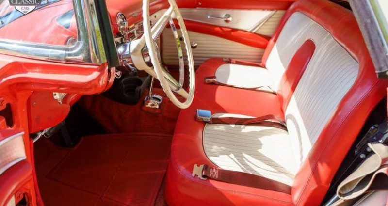 1956 Ford ThunderbirdFiesta Red | 4 Owners | 2 Tops | Power Brakes | Power SteeringOriginal 292ci V8 | Ford-O-Matic 3-speed automatic transmissionOriginal engine, date-coded January 15, 1965Restored by Brothers Restorations in Livonia, MichiganFinished in factory-correct color combinationWhite and Red bench seat interiorIconic 1950s look preservedWell-presented and road-ready classicFinance options available. Provenance : Michigan. Disponibilité : environ 7 semaines, clés en main. 38 000 € tout compris (importation, taxes, procédure d'immatriculation). Annonce publiée le 01/12/2025