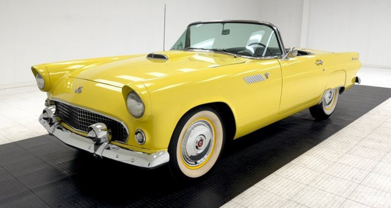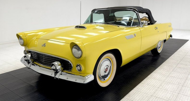 - Année : 1955 - Modèle : Ford Thunderbird Convertible - Couleur extérieure : Jaune doré (Goldenrod Yellow) - Couleur intérieure : Jaune et noir - Moteur : 292ci V8, 198 ch - Boîte de vitesses : Ford-O-Matic 3-vitesse automatique - Direction : assistée - Freinage : assisté - Climatisation : fonctionne - Kilométrage : 34 640 miles (miles non vérifiés). Provenance : , USA. Disponibilité : environ 7 semaines, clés en main. 40 000 € tout compris (import, taxes, procédure d'immatriculation). Annonce publiée le 10/12/2025