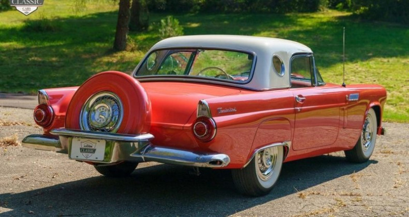 - Marque : Ford - Modèle : Thunderbird - Année : 1956 - Couleur : Rouge Fiesta (K) - Intérieur : Rouge et Blanc - Nombre d'owners : 4 - Nombre de toits : 2 - Freinage : à puissance - Guidage : à puissance - Moteur : V8 de 292 ci, 225 ch - Boîte de vitesses : Ford-O-Matic 3-vitesse automatique - Travaux : restauré par Brothers Restorations à Livonia, Michigan - Kilométrage : 80 325 miles. Provenance : Michigan. Disponibilité : environ 7 semaines, clés en main. 38 000 € tout compris (importation, taxes, procédure d'immatriculation). Annonce publiée le 17/12/2025