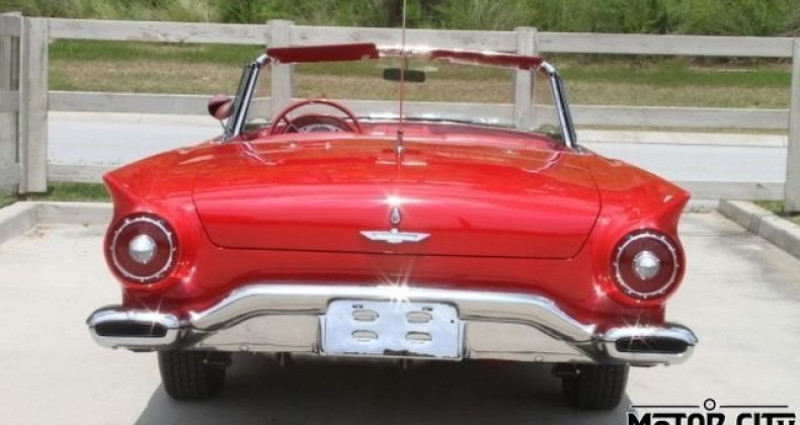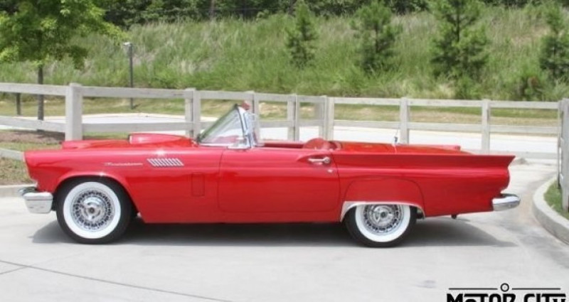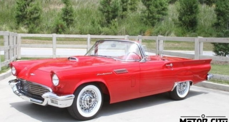 - Marque : Ford - Modèle : Thunderbird - Année : 1957 - Code : E-Code - Numéro de stock : GLS20 - Couleur extérieure : Rouge - Kilométrage : 18 734 - Moteur : 312 cubic inch V8 - Puissance : 270 ch - Carburateurs : Deux Holley - Compression : 9, 7:1 - Couple : 343 lbs - Siège : 4-voies électriques - Fenêtres : Électriques - Freinage : Électriques - Radio : Town and country - Toit : Port-hole rouge en vinyle - Travaux : Restauration concours rotisserie - Détails : Attention payée à chaque détail, hoses d'origine dans la zone moteur, système d'échappement correct, échappement et jupes de fender - Options : Suppression rare de toit mou - Mileage : 18 600 miles estimées originales (si non mentionné dans le titre). Provenance : Florida. Disponibilité : environ 7 semaines, clés en main. 81 000 € tout compris (importation, taxes, procédure d'immatriculation). Annonce publiée le 18/12/2025