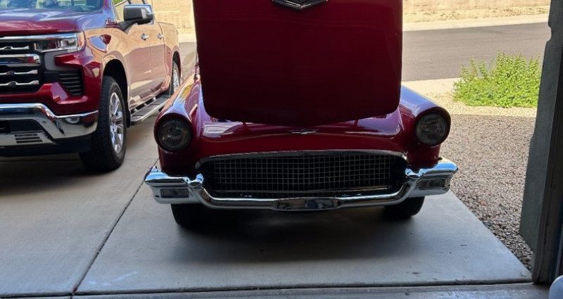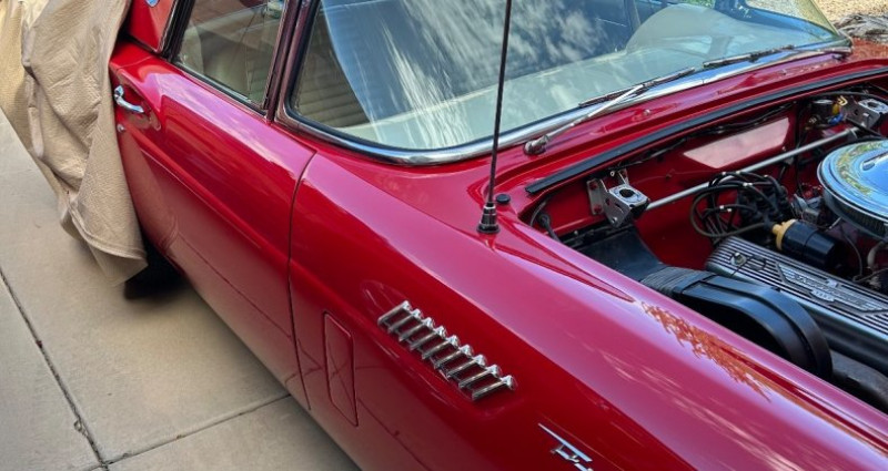 - Année : 1957 - Modèle : Ford Thunderbird (T-bird) - Restauration : Restauration de la structure en 2012 - Moteur : Moteur rénové, remplacement des paliers principaux, paliers de poussoir et anneaux - Jantes : Jantes neuves de fil de fer et pneus neuves - Amortisseurs : Nouveaux amortisseurs - Freins : Freins nouveaux - Intérieur : Nouveau tapis, panneaux de porte et revêtement - Condition : En condition d'exposition - Caisse : Nouveau circuit électrique - Siège : Nouvelles couvertures de sièges non installées - Toit rigide : Nouveau toit rigide - Portes : Nouveaux portes-fenêtres - Calandre : Calandre réchromée - Régime : Roule bien!. Provenance : Arizona. Disponibilité : environ 7 semaines, clés en main. 41 000 € tout compris (importation, taxes, procédure d'immatriculation). Annonce publiée le 20/12/2025