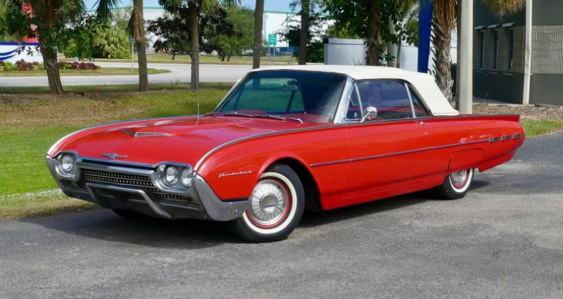 - Année : 1962 - Marque : Ford - Modèle : Thunderbird - Kilométrage : 11 368 Miles (exempt) - Numéro de châssis : 2Y852171726 - Stock : 1049-TAMPA - Couleur extérieure : Rouge Rangoon - Couleur intérieure : Rouge - Moteur : 390 CID V8 - Boîte de vitesses : Cruise-O-Matic automatique. Provenance : Florida. Disponibilité : environ 7 semaines, clés en main. 39 000 € tout compris (importation, taxes, procédure d'immatriculation). Annonce publiée le 22/12/2025