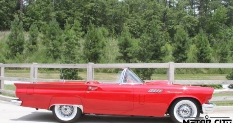 - Marque : Ford - Modèle : Thunderbird - Année : 1957 - Code : E-Code - Numéro de stock : GLS20 - Couleur : Rouge - Kilométrage : 18 734 miles - Moteur : 312 cubic inch 270hp V8 avec deux carburateurs Holley sur une rampe d'alimentation en aluminium, avec un rapport de compression de 9.7:1 et 343lbs de couple - Options : Sièges électriques à 4 voies, fenêtres électriques, freins électriques, radio town and country - Toit : Port-hole rouge en vinyle, sans toit mollable. Provenance : Florida. Disponibilité : environ 7 semaines, clés en main. 80 500 € tout compris (importation, taxes, procédure d'immatriculation). Annonce publiée le 25/12/2025