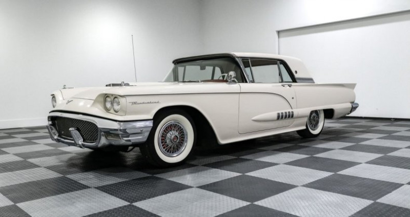 - Marque : Ford - Modèle : Thunderbird - Année : 1958 - Couleur extérieure : Blanc - Couleur intérieure : Rouge - Type de carrosserie : Coupe - Transmission : FMX Automatique - Moteur : 390 V8 - Kilométrage : 33 712 miles - Options : Tachymètre après-marché, tuyaux d'échappement revêtus de céramique courts, couvre-valeurs chromées Thunderbird, sièges baquet, pneus larges, volant à trois branches, vitres électriques, direction assistée, boîte de vitesses centrale, console de conduite, intérieur bicolore personnalisé, roues en acier en forme de croix.. Provenance : Texas. Disponibilité : environ 7 semaines, clés en main. 31 500 € tout compris (importation, taxes, procédure d'immatriculation). Annonce publiée le 29/12/2025