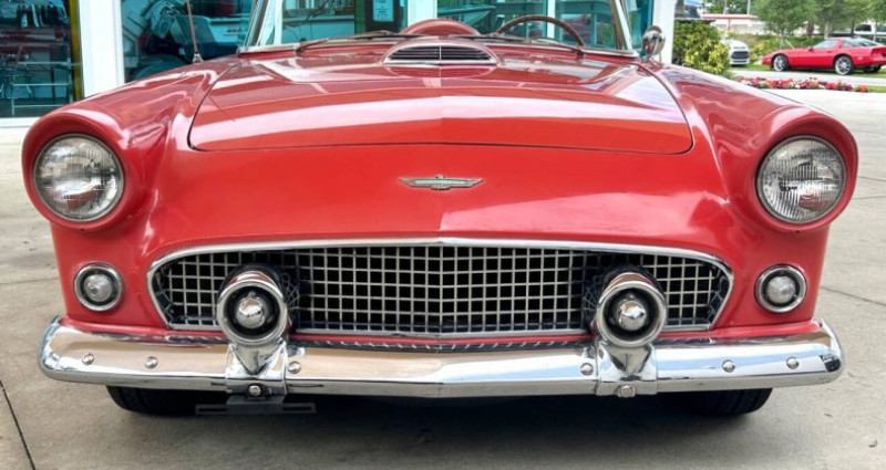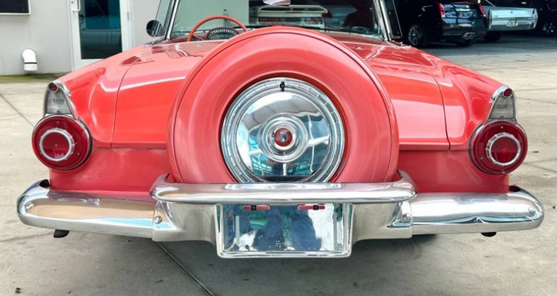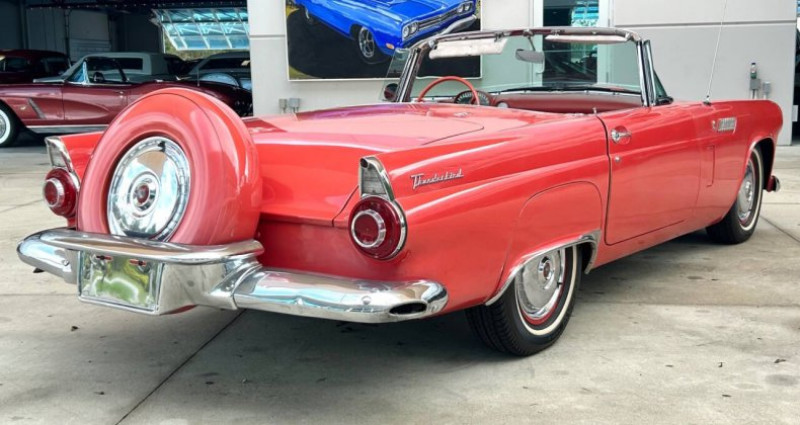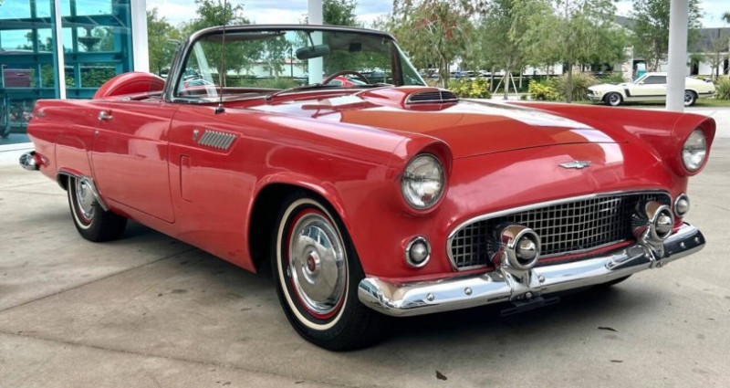 - Année : 1956 - Modèle : Ford Thunderbird - Carrosserie : Cabriolet - Couleur extérieure : Coral - Couleur intérieure : Rouge & Blanc - Moteur : 312 cubic inch Y-block V8 - Puissance : 215 ch - Boîte de vitesses : Automatique - Options : Direction à trois pommes de pin, climatisation moderne, freins à disques avant, roues en acier de 15 pouces avec pneus blancs à bande blanche, capot de moteur en forme de cuvette, capot réglable en porthole et toit en tissu convertible, ventilateur de refroidissement à six ailes, pompe de refroidissement améliorée, radiateur en aluminium moderne, système d'air filtré chromé, etc. - État : Bien entretenu et bien conservé - Kilométrage : 56 423 miles. Provenance : Florida. Disponibilité : environ 7 semaines, clés en main. 43 500 € tout compris (importation, taxes, procédure d'immatriculation). Annonce publiée le 30/12/2025