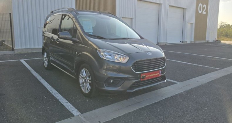 Ford Tourneo COURIER 1.0 E 100 BV6 SetS Titanium break, gris, 5 cv, 4 portes, première mise en circulation le 20/02/2019. 5 places OPTIONS ET ÉQUIPEMENTS : Audio - Télécommunications : - réception DAB - Bluetooth - ecran tactile Conduite : - Système Stop & Start - détecteur de pluie - limiteur de vitesse Extérieur : - 7 branches avec pneumatiques 195/55 - Entourage de calandre chromé - Roues alliage - Vitres teintées AV - barres de toit - phares halogènes - porte latérale Intérieur : - Air conditionné manuel - Boîte à gants éclairée - Hayon AR avec dégivrage et lave/essuie-glace - Pommeau de levier de vitesse cuir - Rétroviseur intérieur électrochromique - Siège passager à dossier inclinable réglable AV/AR et tiroir sous l'assise - Verrouillage centralisé à commande à distance avec 2 clés de commande à distance - Volant 3 branches gainé cuir - direction assistée - fermeture centralisée - filtre à pollen - ordinateur de bord - réglages du volant : hauteur et profondeur - rétroviseur interieur electrochrome - vitres avant éléctriques - vitres surteintées Pack : - Anneaux d'arrimage - Etagère de pavillon - Intérieur des phares argent - Pare-chocs AR couleur carrosserie - Pare-chocs AV couleur carrosserie - Plage AR modulable 3 positions - Poignées de portes couleur carrosserie - Protections latérales couleur carrosserie - Rétroviseurs à réglage électrique et chauffant couleur carrosserie - Siège conducteur à dossier inclinable - Tablettes aviation au dos des sièges AV - Tapis de protection AV et AR - anti démarrage - nombre de rapports : 6 vitesses - volant réglable Sécurité : - Contrôle de la pression des pneumatiques - ABS - Aide au demarrage en pente - Airbags rideaux - Airbags rideaux avant - ESP - aide au freinage d'urgence - airbag conducteur - airbag coté passager - airbags latéraux - kit de dépannage pneumatique - phares antibrouillard - répartiteur électronique de freinage Autres équipements et informations : - 16x6 - 4HP - 5J - Ceintures de sécurité 3 points à toutes les places - Contrôle du roulis de la remorque - Disques à l'AV et tambours à l'AR - Déclenchement automatique des feux de détresse en cas de freinage d'urgence - Extinction différée des phares - Interrupteurs de lève-vitres noirs - Large console centrale avec 2 porte-gobelets et un espace de rangement de taille A4 - Plafonnier AR - Sièges AR 60/40 repliables et rabattables - Système intelligent de recharge de la batterie - Trappe à carburant sans bouchon Easy-Fuel - 3ème feu stop - Classe Crit'air : 1 - Puissance kilowatt : 74 kw - feux de circulation diurne - plafonnier avant - puissance réelle : 100 ch - émission CO2 : 122 g/km Référence annonce : 118VO010735