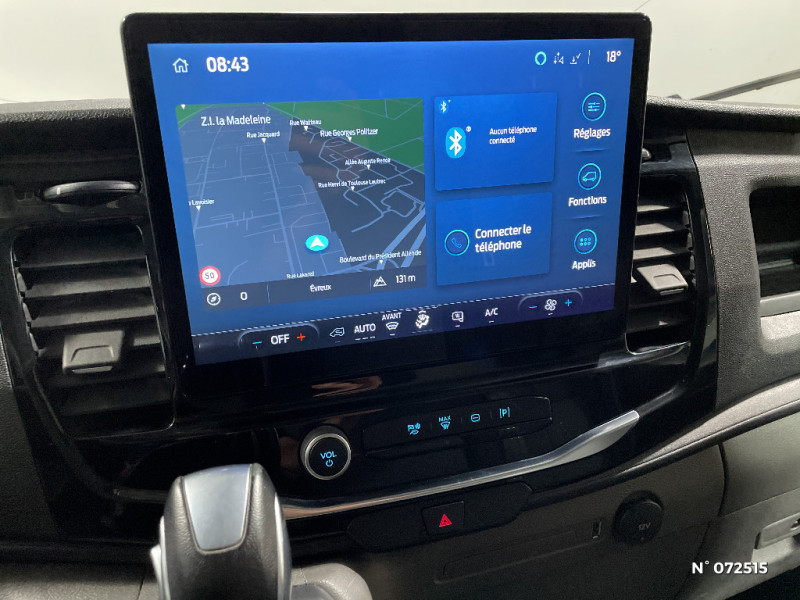Vide-poches dans les portes AV / Volant SENSICO effet cuir / 2 Clés avec télécommande / Jantes alliage 16"x 6.5 avec pneumatiques 235/65 R16 / Kit de réparation pneumatique / Lave/essuie-glaces à intermittence variable / Lave/essuie-glaces AV automatique à détecteur de pluie / Lève-vitres AV électriques avec ouverture à impulsion en descente côté conducteur / Modem 4G FordPass Connect / Navigation connectée + Système audio SYNC 4 + air conditionné automatique + SYNC 4 avec écran tactile 12" + info trafic en temps réel offerte pendant 12 mois / Numéro de série du véhicule visible de l'extérieur / Ordinateur de bord Autonomie, consommation moyenne et instantanée, vitesse moyenne, température extérieure / Pack Assistance conduite 3 - camera de recul / Pare-chocs AR non peint avec marchepied intégré / Pare-chocs AV peint couleur carrosserie / Phares xénon / Poignée de maintien / Poignées de porte noires / Pommeau de levier de vitesses SENSICO effet cuir / Portes AR tôlées / Portes AR tôlées à ouverture à 180° / Prise 12 V au tableau de bord / Protections latérales noires / Range bouteilles (2 litres) à droite et à gauche du tableau de bord / Rangement multiple au dessus du tableau de bord / Rappel de bouclage de ceinture (siège conducteur + passager simple/banquette passager) / Réservoir AdBlue / Réservoir 70 Litres / Rétroviseurs extérieurs double vision à réglage électrique avec répétiteurs de clignotants et chauffants / Re-verrouillage automatique des ouvrants après 45 secondes (si aucun n'est ouvert) / Séparation complète en matériau composite / Siège conducteur à dossier inclinable et appuie-tête réglable, réglable AV/AR et en hauteur, à assise réglable, accoudoir coté droit et réglage lombaire / Signal sonore de non fermeture des portes lors du verrouillage / Stabilisateur de vent latéral / Suspension AR à ressorts à lames et amortisseurs à gaz / Suspension AV indépendante à éléments de type McPherson, ressorts hélicoïdaux à rigidité progressive barre antiroulis et amortisseurs à gaz / Système audio SYNC 4 avec GPS et écran tactile 12", DAB, commande vocale, compatibilité smartphone / Système de protection anti-retournement (ROM) / Témoin de passage des vitesses / Trappe à carburant Ford EasyFuel / Alternateur 240 A / Assise de siège: Capitol, coloris Ebony Rembourrage lateral: City Fabric, coloris Ebony / Banquette passager AV 2 places à assise relevable pour accès espace de rangement et tablette rabattable / Batterie H7 80 Ah / Bavettes AR / Boîte à gants avec couvercle verrouillable pour documents A4 / Calandre avec inserts chromés / Caméra de recul avec plafonnier extérieur AR LED / Ceintures de sécurité 3 points à enrouleur sur tous les sièges / Chauffage à recirculation / Contrôle adaptatif de la charge (LAC) / Détecteur d'eau dans le gazole / Déverrouillage différencié AV/AR / Eclairage de courtoisie et lecteurs de carte à extinction temporisée progressive / Eclairage du compartiment de chargement / Eclairage intérieur limitéà 30 minutes en cas d'arrêt moteur / Espace de rangement sous la banquette passagers / Essieu AV 1850 KG / Etagère de pavillon / Extinction différée des phares / Freinage assistéà double circuit, ABS et freins à disques AV/AR / Garnissage du pavillon de cabine / 8 anneaux d'arrimage de charge à la norme DIN 75410 / Verrouillage automatique des portes en roulant au-delà de 8 km/h / Aide au maintien dans la voie / Air conditionné automatique AV + Audio Sync 4 l'audio Sync 4 avec écran 12" / Alerte anticollision