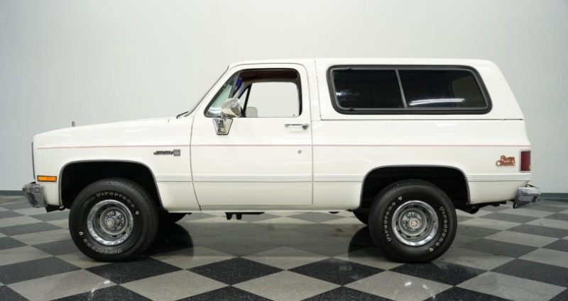 Cet véhicule est un SUV square body Jimmy du type 4X4 équipé d'un moteur V8 de 305 chevaux, d'une boîte automatique à quatre vitesses 700R4, et possédant un empattement de 88 468 miles. Il se distingue par sa peinture extérieure blanche avec des pinstripes rouges, ainsi que sa calandre et ses roues de 15 pouces avec anneaux en chrome. Les sièges intérieurs sont en velours burgundy. D'autres caractéristiques notables comprennent des freins à disque avant, une exhaustion double FlowMaster, un toit rigide retirable, des rétroviseurs chromés, un hitch pour attelage, un système audio Clarion CD, et des options de puissance (verrous, rétroviseurs, fenêtres électriques). L'État général du véhicule semble être bon, avec un intérieur bien conservé et un extérieur sans dommages notables.. Ce descriptif est basé sur les éléments communiqués par le propriétaire avec un traitement assisté. Merci pour votre indulgence en cas de formulation perfectible. Provenance : Tennessee. Disponibilité : 7 semaines, clés en main. 25 000 € tout compris (importation, taxes, procédure d'immatriculation). Annonce publiée le 04/10/2025