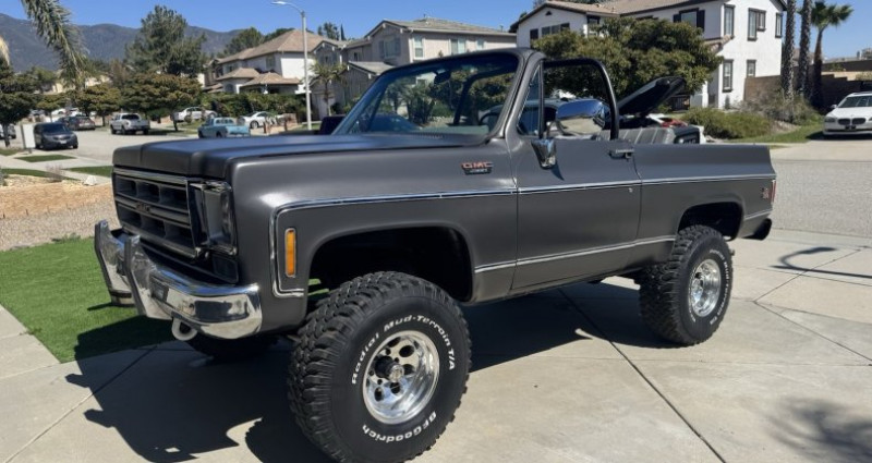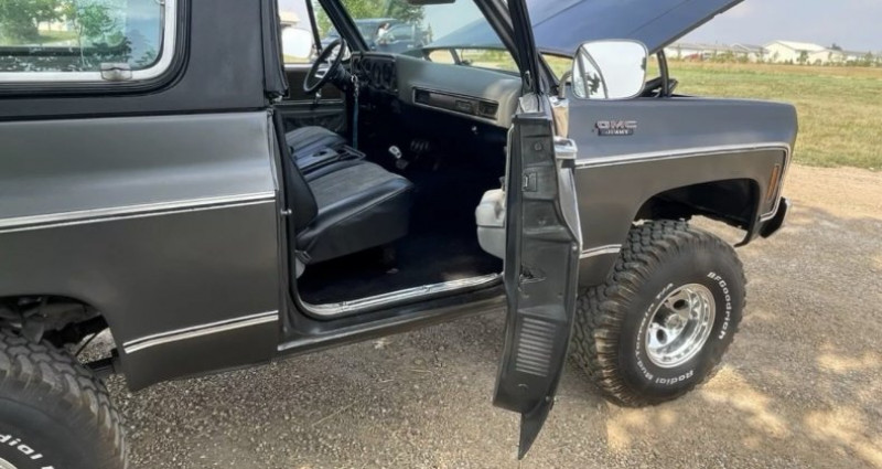 - Année : 1975 - Marque : GMC - Modèle : Jimmy High Sierra - Couleur extérieure : Noir - Couleur intérieure : Noir - Transmission : Automatique - Moteur : 8 cylindres - Sièges : Sièges en tissu - Kilométrage : 90643 miles (environ 145 800 kilomètres) - Équipement : 4 roues motrices, jantes en alliage, cabine spacieuse. Provenance : California. Disponibilité : environ 7 semaines, clés en main. 35 500 € tout compris (importation, taxes, procédure d'immatriculation). Annonce publiée le 21/12/2025