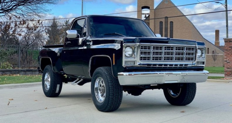 - Marque : Chevrolet - Modèle : Cheyenne Custom (tribute) - Année : 1978 - Type de carrosserie : Pick-up - Couleur extérieure : Noir - Couleur intérieure : Rouge - Moteur : 350 V8 - Boîte de vitesses : Automatique - Propulsion : 4X4 - Châssis : Modèle court à pas de côté - Équipement : Lift kit, roues neuves Chrome, freins à disque, direction assistée, vitres teintées, grille et boucliers chromés (boucliers noirs disponibles), ajouts de jauges, lit de chargement en bois - Kilométrage : 50 000 - Pneus : 33x12.5x15LT B.F. Goodrich Mud Terrain T/A (ou 15 roues Fuel Noir avec pneus 33x12.5x15LT B.F. Goodrich Mud Terrain T/A). Provenance : Michigan. Disponibilité : environ 7 semaines, clés en main. 38 000 € tout compris (importation, taxes, procédure d'immatriculation). Annonce publiée le 30/12/2025