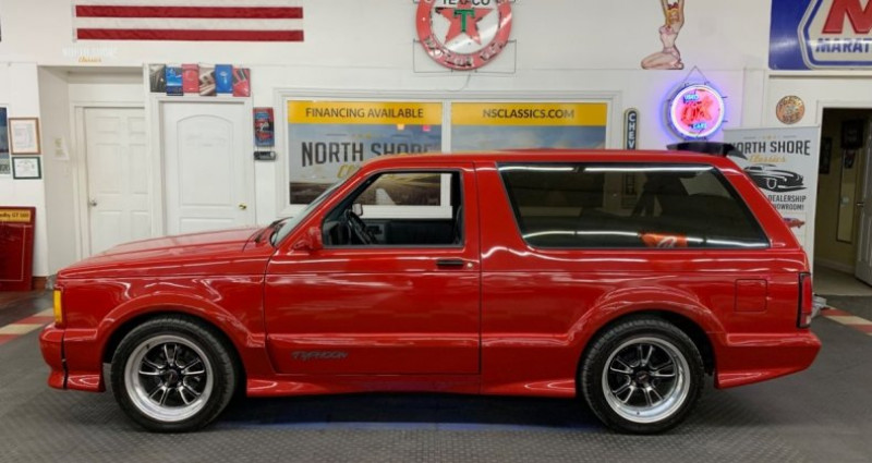 1992 GMC Typhoon, Stock #: 92914JMCV, Exterior Color: Red, Interior Color: Gray, Body Type: SUV, Transmission: 4-Speed Automatic, Engine: 4.3L Turbo V6, Mileage: 81, 413, AWD, Turbo, 4.3L, Power windows, Power brakes, Power steering, Leather, Automatic transmission, Built motor, New GM block and crank, Eagle H-beam rods, Mahle aluminum pistons, Vortec heads, ARP bolts and head studs, Melling helicoil asymmetric oil pump, Isky hydraulic roller cam shaft, 58/62 precision turbo, Scorpion roller rockers, 60lb injectors, Walboro fuel pump, Turbo smart waste gate, 3' SS exhaust, BBK throttle body, Hallman boost control, New intercooler pump, External trans cooler, High torque starter, Battery relocated to rear, Belltech 2' lowering kit, BF Goodrich tires, Rear anti sway bar, Corsa exhaust, 17 inch weld wheels, 1 of 345 in apple red for 92, Estimated 400HP. Provenance : Illinois. Disponibilité : environ 7 semaines, clés en main. 44 500 € tout compris (importation, taxes, procédure d'immatriculation). Annonce publiée le 28/11/2025
