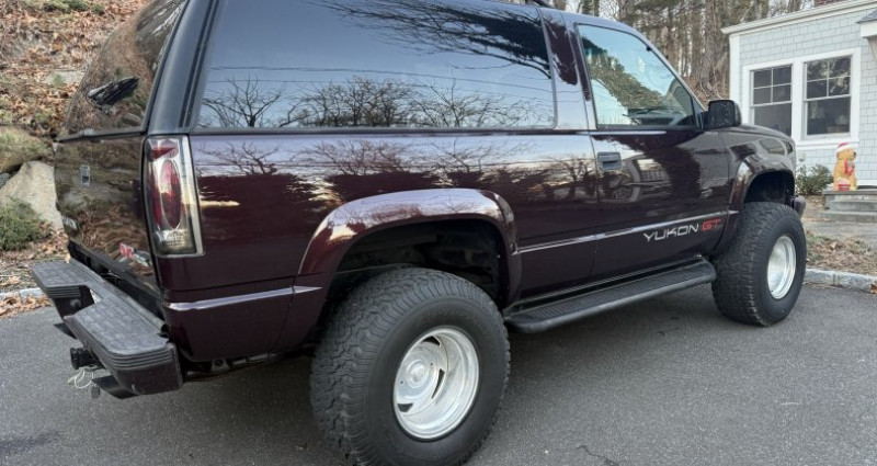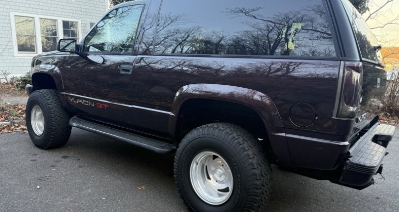 - Année : 1996 - Modèle : Yukon GT 2 Door 4x4 - Couleur : Noir Cherry sur cuir Rouge Rudy - Lift kit : Oui - Roues : Aluminium billet poli, pneus et jantes améliorées, lentilles de phare fumées, capot à l'avant - État général : Propre à l'intérieur et à l'extérieur - Rust : Peu de ruste - Moteur et boîte de vitesses : Passé par 40 000 miles, fonctionne et se démarre parfaitement, pression d'huile parfaite, brûle peu d'huile, fonctionne très bien - Climatisation : Fonctionne très bien - Avis du vendeur : Le véhicule est propre et rare, il est dans un état exceptionnel pour son âge. Il est utilisé occasionnellement, donc le kilométrage peut augmenter légèrement.. Provenance : New York. Disponibilité : environ 7 semaines, clés en main. 23 500 € tout compris (importation, taxes, procédure d'immatriculation). Annonce publiée le 25/12/2025
