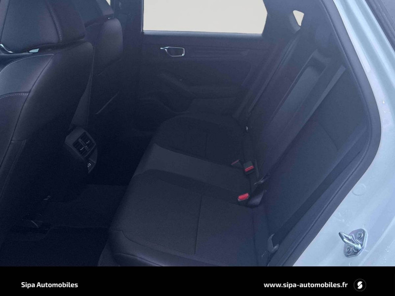 4 Modes de conduite (ECO/NORMAL/SPORT/INDIVIDUAL) / 8 HP / Affichage multi-information 7" / Ancrages ISOFIX / I-SIZE / Antenne aileron de requin couleur carrosserie / Appuis-tête AV anti coup du lapin / Assistance à la conduite dans les embouteillages / Boîte automate à fonction continue / Cache-bagages à enrouleur / Capot à soulèvement automatique / Ceintures de sécurité AV et AR avec enrouleur à verrouillage d'urgence (ELR) / Chargeur sans fil / Clignotants LED / Commande de freinage / décélération régénérative (palettes) / Contrôle de la traction (TCS) / Déverrouillage des portes paramétrables / Direction à assistance électrique variable / Eclairage d'ambiance blanc (plafond) / Eclairage de courtoisie / Eclairage de la boîte à gants / Eclairage de miroirs de courtoisie (pare-soleils) / Eclairage du coffre / Eclairage du compteur blanc / Fixations de filet à bagages / Fonction ECON déconnectable / Frein de stationnement électrique automatique / Garnitures de fenêtres (faible brillance) noir brillant / Garnitures de portes en tissu noir / Garnitures en cuir synthétique noir Accoudoir central AV, Accoudoirs de porte AV, Accoudoirs de portes AR. / Honda CONNECTavec Navigation (Ecran tactile 9", radio AM / FM / DAB, Apple Carplay et Android Auto) / Inserts intérieurs de portes AR Noir Mat / Inserts intérieurs de portes AV Noir Brillant / Inserts noirs texturés anti-trace console centrale / Jantes alliage 18" Noir Brillant / Kit de réparation des crevaisons / Liseuse AR / Liseuse AV / Miroirs de courtoisie dans les pare-soleils / Pédalier sport / Phares LED / Poches aumônières siège passager / Poignées de porte intérieures chrome platine / Poignées de portes extérieures couleur carrosserie / Prise accessoire (AV & Coffre) / Radars de stationnement 4 capteurs à l'AV et 4 capteurs à l'AR / Rétroviseur intérieur automatique jour/nuit / Rétroviseurs extérieurs asphériques côté conducteur / Sellerie cuir synthétique et tissu (noir) / Sièges AV conducteur avec soutiens lombaires électrique / Signal de freinage d'urgence automatique / Suivi automatique à basse vitesse / Système d'alarme / Système d'alerte anticollision frontale / Système d'appel d'urgence (eCall) / Système d'assistance au maintien dans la voie de circulation / Système de déverrouillage et de démarrage sans clé / Système de feux de route actifs / Système de prévention des collisions par régulation de l'accélérateur (vers l'AV et l'AR) / Système de surveillance de l'angle mort avec alerte de véhicule en approche / Système de temporisation de l'allumage/extinction des feux / Système d'immobilisation électronique / Système d'optimisation du comportement routier AHA (Agile Handling Assist) / Tweeters AV / Ventilation AR / Vitres - Télécommandés