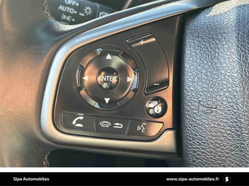 2 Prises USB & Prise HDMI / 8 HP / Affichage multi-information / Airbag conducteur à double mode de déclenchement / Ancrages ISOFIX aux places latérales AR / Antenne aileron de requin / Appuis-tête AV anti coup du lapin / Calandre noire / Caméra de recul avec guides dynamiques / Déverrouillage des portières par télécommande en deux temps / Direction à assistance électrique variable / Direction assistée électrique adaptive / Essuie-glace AV automatique à capteur de pluie / Fonction ECON déconnectable / Frein de stationnement électronique avec maintien de freinage / Honda Fusion / Illumination du coffre / Illumination du plafonnier / Indicateur de changement de rapport optimal / Kit de réparation des crevaisons / Lave-phares haute pression / Ligne de vitrage avec cerclage chromée / Lumière de boîte à gants / Lumière de courtoisie / Lumière du mirroir de courtoisie / Meter Illumination bleu / Navigation Garmin pour Honda Connect / Pédalier en alliage / Phares LED / Plage AR ammovible / Pneumatisues 235/45 R17" / Poche aumônière au dos du siège passager / Poignées de portes extérieures couleur carrosserie / Pommeau de levier de vitesse cuir / Prise auxiliaire / Réglage électrique du soutien lombaire côté conducteur et passager / Réglage en hauteur manuel du siége conducteur / Rétroviseurs extérieurs couleur carrosserie / Signal de freinage d'urgence automatique / Spoiler / Système d'alarme / Système d'alerte anticollision frontale / Système d'assistance au maintien dans la voie de circulation LKAS (Lane Keeping Assist System) / Système de coupure automatique du moteur à l'arrêt Auto Stop / Système de feux de route actifs / Système de prévention des collisions par freinage CMBS (Collision Mitigation Bbraking System) / Système de temporisation de l'allumage/extinction des feux / Système d'immobilisation électronique / Troisième feu de stop surélevé