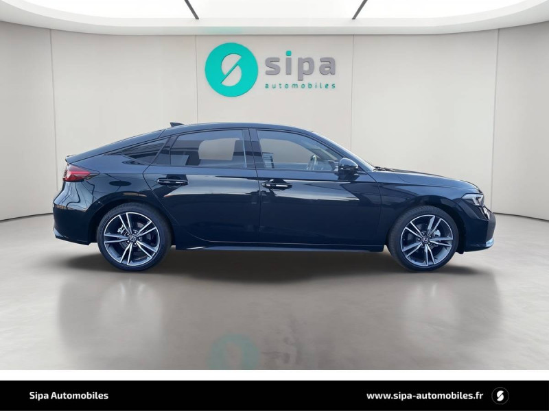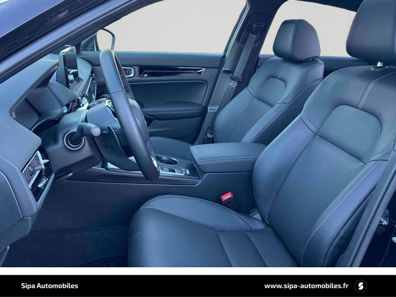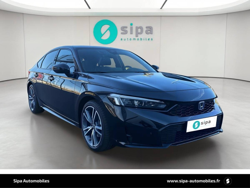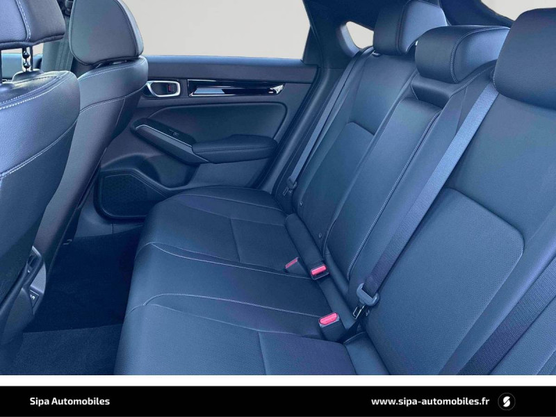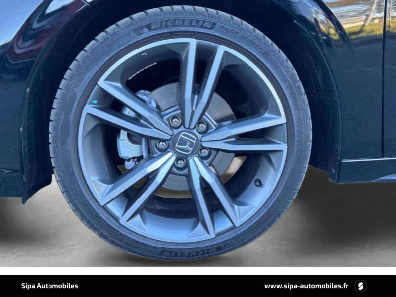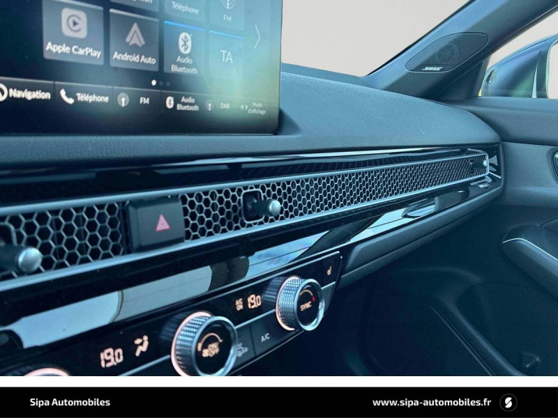 Affichage multi-information 10,2" / Ancrages ISOFIX / I-SIZE / Antenne aileron de requin couleur carrosserie / Appuis-tête AV anti coup du lapin / Assistance à la conduite dans les embouteillages / Assistance à la stabilité du véhicule (VSA) / Boîte automate à fonction continue / Calandre Noir Brillant / Ceintures de sécurité AV avec enrouleur à verrouillage d'urgence (ELR) / Chargeur sans fil / Clignotants AV et AR LED / Commande de freinage / décélération régénérative (palettes) / Compartiment pour lunettes / Contrôle de la traction (TCS) / Coupure automatique du moteur à l'arrêt Auto Stop / Crochet pour filet de chargement / Déverrouillage des portes paramétrables / Direction à assistance électrique adaptatif (MA-EPS) / Direction à assistance électrique variable / Eclairage d'ambiance - panneaux de porte / Eclairage d'ambiance (plafond) / Eclairage de la boîte à gants / Eclairage de miroirs de courtoisie (pare-soleils) / Eclairage du coffre / Eclairage du compteur blanc / Faisceau de conduite adaptatif / Feux de virages adaptatifs LED / Frein de stationnement électrique automatique / Garniture de fenêtre - chrome / Garniture de fenêtre - haute brillance (noir) / Grille de ventilation en "nid d'abeille" en chrome mat / Honda CONNECT avec système de navigation (écran tactile 9", AM/FM/DAB, Apple Carplay et Android Auto informations routières en temps réel) / HP - Central AV / HP - Subwoofer / HP - Tweeters AV / Indicateur de perte de pression des pneus / Jantes alliage 18" bicolores diamantées / Kit de réparation des crevaisons / Liseuse AV / Lumière de courtoisie / Miroirs de courtoisie dans les pare-soleils / Modes de conduite - ECON/Normal/Sport/Individuel / Panneaux de portes intérieurs Noir brillants / Pédalier sport / Plage AR / Pneumatiques 235/40 ZR18 95Y / Poignées de porte intérieures chrome / Poignées de portes extérieures ton carrosserie / Prise accessoire (AV et AR) / Prise USB 2 AR type A / Prise USB 2 AV type C / Radars de stationnement (4 capteurs AV et 4 capteurs AR) / Rétroviseur intérieur automatique jour/nuit / Rétroviseurs extérieurs couleur carrosserie / Rétroviseurs rabattables et fermeture/ouverture des vitres depuis la clé / Sellerie cuir et similicuir Noir / Siège conducteur - Réglages électriques (8 voies) / Siège conducteur - soutien lombaire à réglage électrique / Siège passager AV - Réglages électriques (4 voies) / Siège passager AV - soutien lombaire à réglage électrique / Sièges AV conducteur et passager - poche aumônière / Signal de freinage d'urgence automatique / Suivi automatique à basse vitesse / Surveillance de la vigilance du conducteur / Système audio Premium BOSE 12 HP / Système d'alarme / Système d'alerte anticollision frontale / Système d'appel d'urgence (eCall) / Système d'assistance au maintien dans la voie de circulation / Système de déverrouillage et de démarrage sans clé / Système de prévention des collisions par régulation de l'accélérateur (vers l'AV et l'AR) / Système de prévention et d'atténuation des sorties de route / Système de surveillance de l'angle mort avec alerte de véhicule en approche / Système de temporisation de l'allumage/extinction des feux / Système d'immobilisation électronique / Système d'optimisation du comportement routier AHA (Agile Handling Assist) / Ventilation AR / Volant chauffant