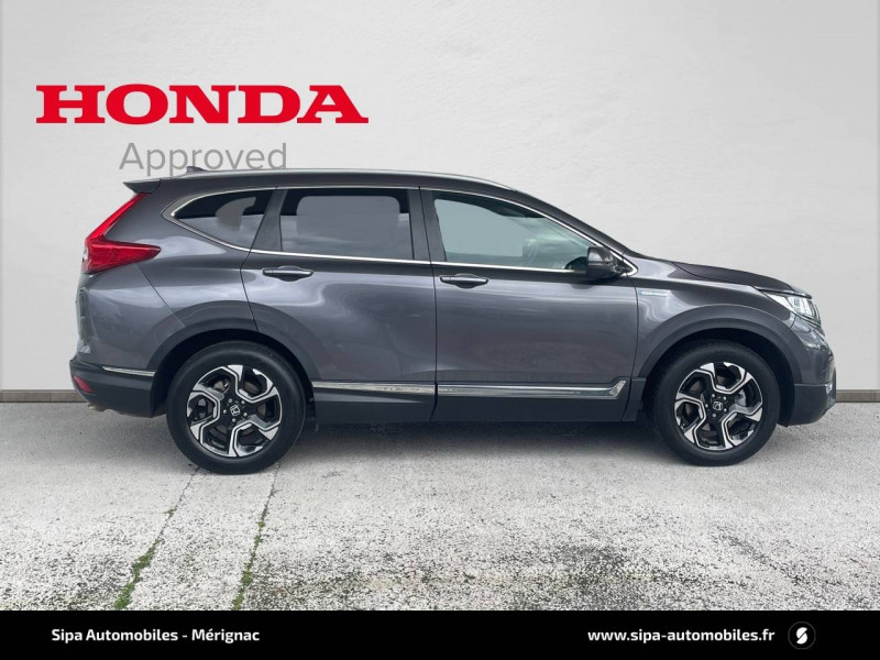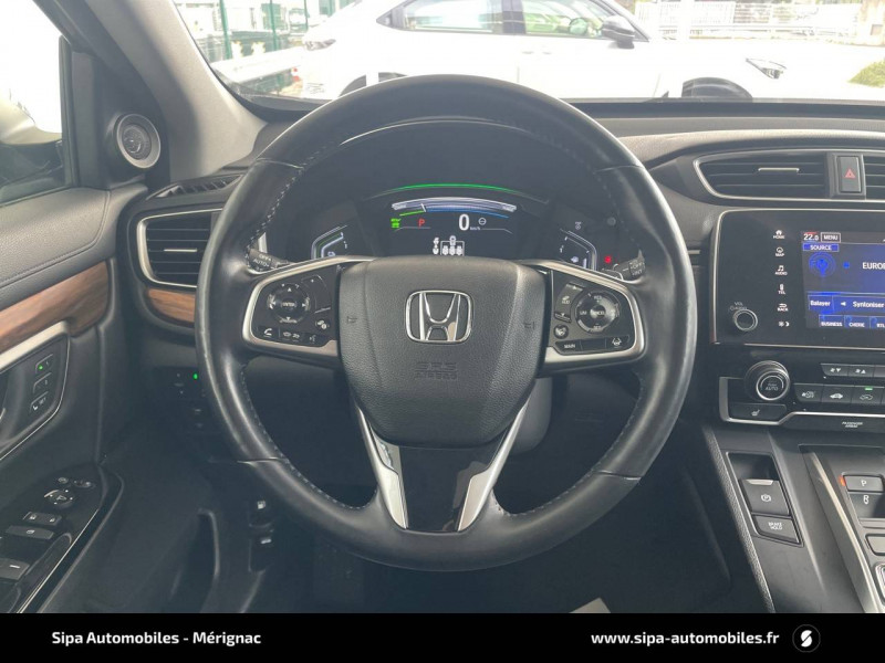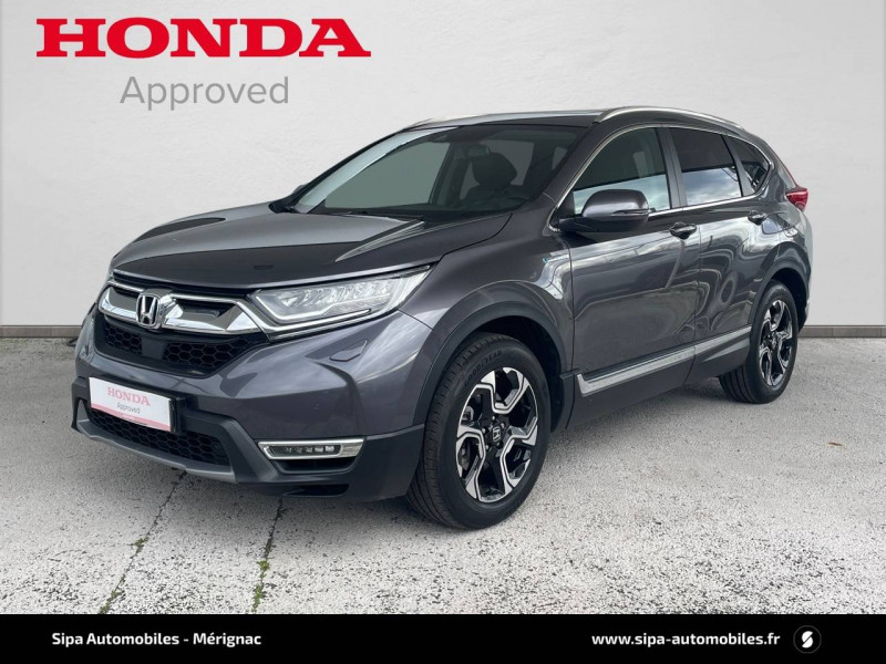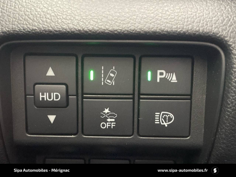 2 Prises USB AR (recharge uniquement) / 9 HP avec subwoofer / Antenne aileron de requin / Appuis-têtes AV anti coup-du-lapin / "ATTENTION" - Equipements non communiqués / Badge AWD à l'AR / Badge Hybrid / Banquette AR Magique (rabattable 60/40 en un seul geste) / Compartiment pour lunettes avec miroir / Dégivrage d'essuie-glaces AV / Eclairage actif d'intersection / Eclairage d'ambiance (conducteur/passager/poignées de porte) / Eclairage d'ambiance (plafond) / Eclairage de boîte à gants / Eclairage de courtoisie / Eclairage du coffre / Essuie-glace AV automatique avec détecteur de pluie / Fixations de filet à bagages / Fonction ECON déconnectable / Frein de parking électronique avec maintien de freinage / Honda CONNECT : Écran tactile 7", AM / FM / DAB, Apple CarPlayTM / Android AutoTM, radio internet application AhaTM et navigation internet / Insert de tableau de bord façon bois / ISOFIX : Ancrages normalisés pour sièges enfants / Kit de réparation des crevaisons / Lave-phares haute pression / Liseuses AV et AR / Miroirs de courtoisie dans les pare-soleil / Navigation Garmin pour Honda Connect / Ordinateur de bord intelligent i-MID / Plage AR / Pneumatiques 235/60 R18 / Poche aumônière siège conducteur / Poche aumônière siège passager AV / Poignées de porte intérieures chromées / Poignées de portes couleur carroserie / Prise 12V dans la console centrale / Prise 12V dans le coffre / Rails de toit / Réglage électrique du siège conducteur à mémoire (8 positions) / Réglage électrique du soutien lombaire côté conducteur / Réglage électrique du soutien lombaire côté passager / Réglage en hauteur manuel du siège passager / Rétroviseur extérieur passager avec fonction recul / Rétroviseur intérieur automatique jour/nuit / Signal de freinage d'urgence automatique / Spoiler de hayon / Suivi automatique à basse vitesse / Système d'alarme / Système d'alerte anticollision frontale / Système d'assistance au maintien dans la voie de circulation / Système de déverrouillage et de démarrage sans clé / Système de feux de route actifs / Système de surveillance de l'angle mort avec alerte de véhicule en approche / Système de temporisation de l'allumage/extinction des feux / Système d'immobilisation électronique / Système d'optimisation du comportement routier / Ventilation AR / Volant chauffant
