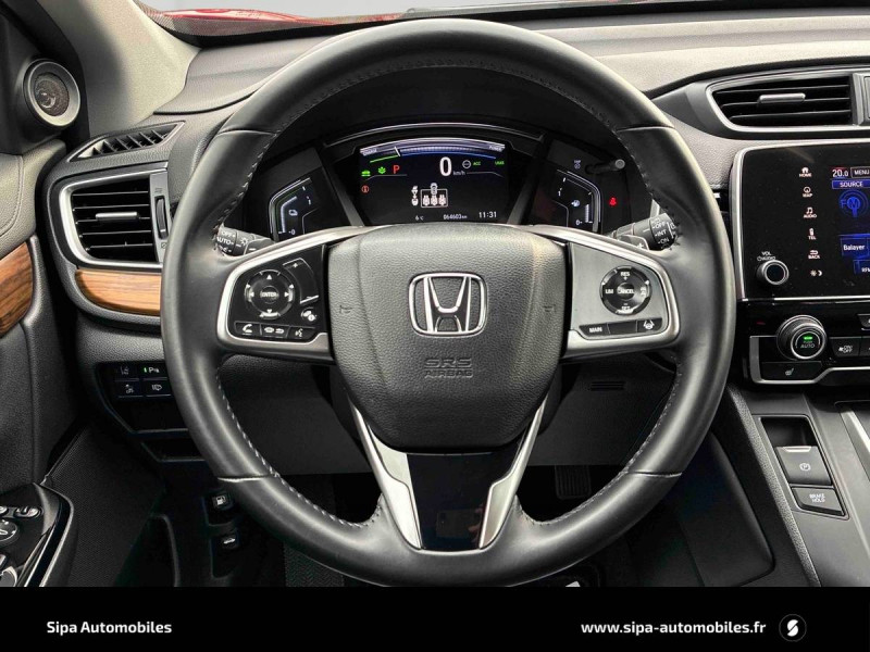 2 Prises USB AR (recharge uniquement) / 9 HP avec subwoofer / Antenne aileron de requin / Appuis-têtes AV anti coup-du-lapin / Badge AWD à l'AR / Badge Hybrid / Banquette AR Magique (rabattable 60/40 en un seul geste) / Compartiment pour lunettes avec miroir / Eclairage de boîte à gants / Eclairage de courtoisie / Eclairage du coffre / Essuie-glace AV automatique avec détecteur de pluie / Fixations de filet à bagages / Fonction ECON déconnectable / Frein de parking électronique avec maintien de freinage / Honda CONNECT : Écran tactile 7", AM / FM / DAB, Apple CarPlayTM / Android AutoTM, radio internet application AhaTM et navigation internet / Insert de tableau de bord façon bois / ISOFIX : Ancrages normalisés pour sièges enfants / Kit de réparation des crevaisons / Lave-phares haute pression / Liseuses AV et AR / Miroirs de courtoisie dans les pare-soleil / Navigation Garmin pour Honda Connect / Ordinateur de bord intelligent i-MID / Plage AR / Pneumatiques 235/60 R18 / Poche aumônière siège conducteur / Poche aumônière siège passager AV / Poignées de porte intérieures chromées / Poignées de portes couleur carroserie / Prise 12V dans la console centrale / Prise 12V dans le coffre / Réglage électrique du soutien lombaire côté conducteur / Rétroviseur extérieur passager avec fonction recul / Rétroviseur intérieur automatique jour/nuit / Signal de freinage d'urgence automatique / Spoiler de hayon / Suivi automatique à basse vitesse / Système d'alarme / Système d'alerte anticollision frontale / Système d'assistance au maintien dans la voie de circulation / Système de déverrouillage et de démarrage sans clé / Système de feux de route actifs / Système de temporisation de l'allumage/extinction des feux / Système d'immobilisation électronique / Système d'optimisation du comportement routier / Ventilation AR