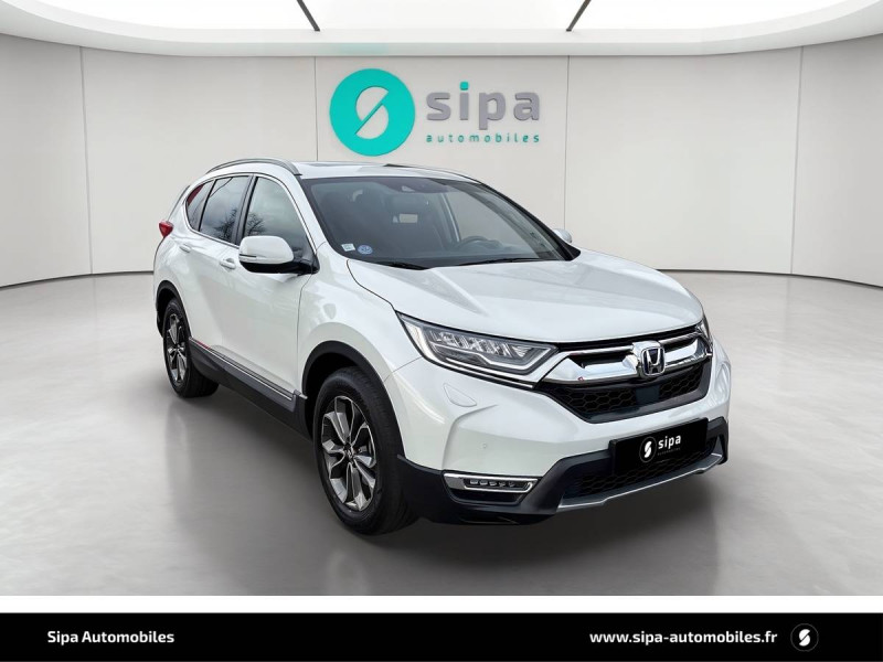 2 Prises USB AR (recharge uniquement) / 9 HP avec subwoofer / Antenne aileron de requin / Appuis-têtes AV anti coup-du-lapin / Badge AWD à l'AR / Badge Hybrid / Banquette AR Magique (rabattable 60/40 en un seul geste) / Compartiment pour lunettes avec miroir / Dégivrage d'essuie-glaces AV / Eclairage actif d'intersection / Eclairage d'ambiance (conducteur/passager/poignées de porte) / Eclairage d'ambiance (plafond) / Eclairage de boîte à gants / Eclairage de courtoisie / Eclairage du coffre / Essuie-glace AV automatique avec détecteur de pluie / Fixations de filet à bagages / Fonction ECON déconnectable / Frein de parking électronique avec maintien de freinage / Honda CONNECT : Écran tactile 7", AM / FM / DAB, Apple CarPlayTM / Android AutoTM, radio internet application AhaTM et navigation internet / Insert de tableau de bord façon bois / ISOFIX : Ancrages normalisés pour sièges enfants / Kit de réparation des crevaisons / Lave-phares haute pression / Liseuses AV et AR / Miroirs de courtoisie dans les pare-soleil / Navigation Garmin pour Honda Connect / Ordinateur de bord intelligent i-MID / Plage AR / Pneumatiques 235/60 R18 / Poche aumônière siège conducteur / Poche aumônière siège passager AV / Poignées de porte intérieures chromées / Poignées de portes couleur carroserie / Prise 12V dans la console centrale / Prise 12V dans le coffre / Rails de toit / Réglage électrique du siège conducteur à mémoire (8 positions) / Réglage électrique du soutien lombaire côté conducteur / Réglage électrique du soutien lombaire côté passager / Réglage en hauteur manuel du siège passager / Rétroviseur extérieur passager avec fonction recul / Rétroviseur intérieur automatique jour/nuit / Signal de freinage d'urgence automatique / Spoiler de hayon / Suivi automatique à basse vitesse / Système d'alarme / Système d'alerte anticollision frontale / Système d'assistance au maintien dans la voie de circulation / Système de déverrouillage et de démarrage sans clé / Système de feux de route actifs / Système de surveillance de l'angle mort avec alerte de véhicule en approche / Système de temporisation de l'allumage/extinction des feux / Système d'immobilisation électronique / Système d'optimisation du comportement routier / Ventilation AR / Volant chauffant