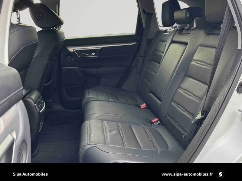 2 Prises USB AR (recharge uniquement) / 9 HP avec subwoofer / Antenne aileron de requin / Appuis-têtes AV anti coup-du-lapin / Badge e:HEV / Banquette AR Magique (rabattable 60/40 en un seul geste) / Compartiment pour lunettes avec miroir / Dégivrage d'essuie-glaces AV / Eclairage actif d'intersection / Eclairage d'ambiance (conducteur/passager/poignées de porte) / Eclairage d'ambiance (plafond) / Eclairage de boîte à gants / Eclairage de courtoisie / Eclairage du coffre / Essuie-glace AV automatique avec détecteur de pluie / Fixations de filet à bagages / Fonction ECON déconnectable / Frein de parking électronique avec maintien de freinage / Garnitures intérieures Argent / Honda CONNECT : Écran tactile 7", AM / FM / DAB, Apple CarPlayTM / Android AutoTM, radio internet application AhaTM et navigation internet / Insert de tableau de bord façon bois / ISOFIX : Ancrages normalisés pour sièges enfants / Kit de réparation des crevaisons / Lave-phares haute pression / Liseuses AV et AR / Miroirs de courtoisie dans les pare-soleil / Navigation Garmin pour Honda Connect / Ordinateur de bord intelligent i-MID / Plage AR / Pneumatiques 235/60 R18 / Poche aumônière siège conducteur / Poche aumônière siège passager AV / Poignées de porte intérieures chromées / Poignées de portes couleur carroserie / Prise 12V dans la console centrale / Prise 12V dans le coffre / Rails de toit / Réglage électrique du siège conducteur à mémoire (8 positions) / Réglage électrique du soutien lombaire côté conducteur / Réglage électrique du soutien lombaire côté passager / Réglage en hauteur manuel du siège passager / Rétroviseur extérieur passager avec fonction recul / Rétroviseur intérieur automatique jour/nuit / Signal de freinage d'urgence automatique / Spoiler de hayon / Suivi automatique à basse vitesse / Système d'alarme / Système d'alerte anticollision frontale / Système d'assistance au maintien dans la voie de circulation / Système de déverrouillage et de démarrage sans clé / Système de feux de route actifs / Système de surveillance de l'angle mort avec alerte de véhicule en approche / Système de temporisation de l'allumage/extinction des feux / Système d'immobilisation électronique / Système d'optimisation du comportement routier / Ventilation AR / Volant chauffant