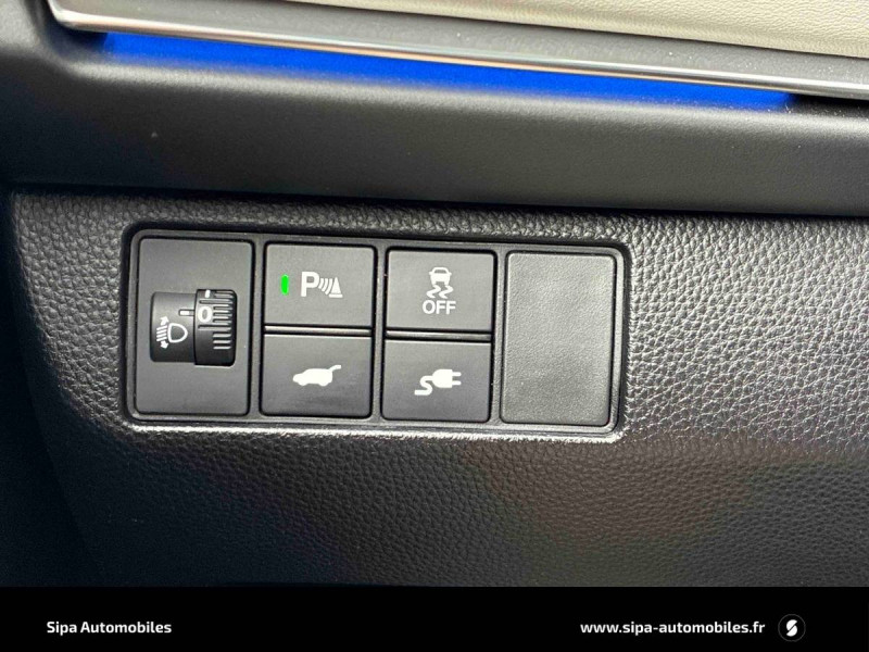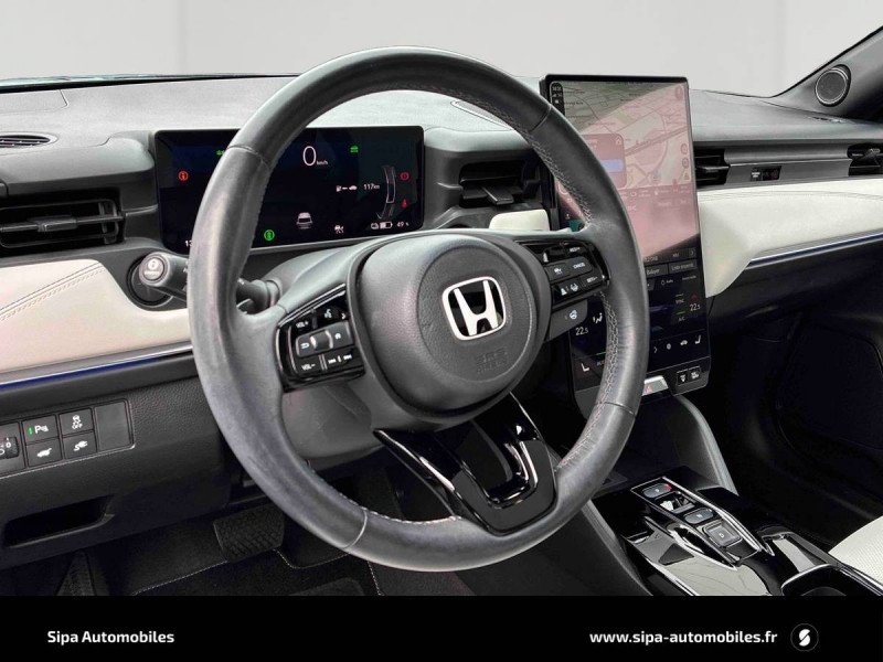 3 Modes de conduite (ECO / NORMAL / SPORT) / 6 HP / Affichage multi-information / Ancrages ISOFIX / I-SIZE / Antenne aileron de requin couleur carrosserie / Assistance à la conduite dans les embouteillages / Avertisseur de démarrage du véhicule suivi / Badge "HONDA" à la place du logo / Câble de charge domestique 230V PEVSE / Câble de charge Gun-to-Gun triphasé / Cache-bagages / Calandre AV pleine / couleur carrosserie / Ceintures de sécurité AV et AR avec enrouleur à verrouillage d'urgence (ELR) / Chargeur sans fil / Clignotants AV et AR à LED / Coffre électrique avec détection de pied et fermeture à l'éloignement / Commande de freinage / décélération régénérative (palettes) / Direction à assistance électrique variable / Eclairage d'ambiance blanc (plafond) / Eclairage de courtoisie / Eclairage du coffre / Fixations de filet à bagages / Fonction ECON déconnectable / Frein de stationnement électrique automatique / Garnitures de fenêtres (faible brillance) noir brillant / Honda CONNECT avec Navigation (Écran tactile 15", radio AM / FM / DAB, Apple Carplay et Android Auto / Honda Parking Pilot / Honda Sensing / HP - Tweeter AV / Inserts intérieurs de portes AR noir / Inserts intérieurs de portes AV argentés avec illumination bleue / Jantes alliage 18" bicolores diamantées / Kit de réparation des crevaisons / Liseuse AV / Miroirs de courtoisie dans les pare-soleils / Pneumatiques 225/50 R18 / Poches aumônières siège conducteur / Poignées de porte intérieures chrome platine / Poignées de portes extérieures couleur carrosserie / Prise accessoires AV / Radars de stationnement (4 capteurs AV, 4 capteurs AR et 4 capteurs latéraux) / Rangement pour cables dans le sous-coffre / Rétroviseur intérieur automatique jour/nuit / Sellerie cuir synthétique / Siège conducteur - Réglages électriques (8 voies) / Signal de freinage d'urgence automatique / Suivi automatique à basse vitesse / Système d'alarme / Système d'alerte anticollision frontale / Système d'appel d'urgence (eCall) / Système d'assistance au maintien dans la voie de circulation / Système de déverrouillage et de démarrage sans clé / Système de feux de route actifs / Système de prévention des collisions par régulation de l'accélérateur (vers l'AV et l'AR) / Système de surveillance de l'angle mort avec alerte de véhicule en approche / Système de temporisation de l'allumage/extinction des feux / Système d'immobilisation électronique / Système d'optimisation du comportement routier AHA (Agile Handling Assist) / Tableau de bord et console avec inserts argentés et illumination bleue / Tableau de bord numérique 10,2" / Ventilation AR / Vitres - Télécommandés / Volant chauffant