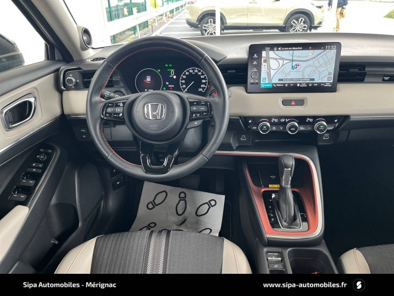 3 Modes de conduite (ECO / NORMAL / SPORT) / 8 HP / Affichage multi-information / Ancrages ISOFIX / I-SIZE / Antenne aileron de requin / Appuis-tête AV anti coup du lapin / Calandre ton carrosserie / Chargeur sans fil / Clignotants AV LED séquentiels / Commande de freinage / décélération régénérative (palettes) / Compatibilité My Honda+ / Compatiment inférieur dans le coffre / Coupure automatique du moteur à l'arrêt Auto Stop / Déverrouillage des portes paramétrables / Direction à assistance électrique variable / Eclairage actif d'intersection LED / Eclairage d'ambiance (plafond) / Eclairage de courtoisie / Eclairage de miroirs de courtoisie (pare-soleils) / Eclairage du coffre / Eclairage du compteur / Fixations de filet à bagages x 2 / Fonction ECON déconnectable / Frein de stationnement électrique automatique / Garnitures de fenêtres (haute brillance) / Garnitures de portes inférieures orange et Ornement tricolor sur la calandre / Hayon électrique mains libres avec fermeture automatique à l'éloignement / Honda CONNECTavec Navigation (Ecran tactile 9", radio AM / FM / DAB, Apple Carplay et Android Auto) / HP Premium / Inserts intérieurs argent / Kit de réparation des crevaisons / Liseuse AR / Liseuse AV / Miroirs de courtoisie dans les pare-soleils / Pare-brise AV chauffant / Peinture Kaki Sable bi-ton / Phares AR LED - Lentilles rouges et fumées / Phares LED / Plage AR (fixée au hayon) / Poches aumônières siège conducteur / Poches aumônières siège passager / Poignées de porte intérieures argent / Poignées de portes extérieures couleur carrosserie / Prise accessoires AV / Radars de stationnement 4 capteurs à l'AV et 4 capteurs à l'AR / Rails de toit / Rétroviseur intérieur automatique jour/nuit / Rétroviseurs extérieurs - Fonction recul côté passager / Sellerie cuir synthétique et tissu (gris clair) / Signal de freinage d'urgence automatique / Spoiler / Subwoofer (caisson de graves) / Suivi automatique à basse vitesse / Système d'alarme / Système d'alerte anticollision frontale / Système d'appel d'urgence (eCall) / Système de déverrouillage et de démarrage sans clé / Système de feux de route actifs / Système de prévention des collisions par régulation de l'accélérateur (vers l'AV et l'AR) / Système de retenue en descente / Système de surveillance de l'angle mort avec alerte de véhicule en approche / Système de temporisation de l'allumage/extinction des feux / Système d'immobilisation électronique / Système d'optimisation du comportement routier AHA (Agile Handling Assist) / Toit contrasté / Tweeters AR / Tweeters AV / Ventilation AR / Volant chauffant
