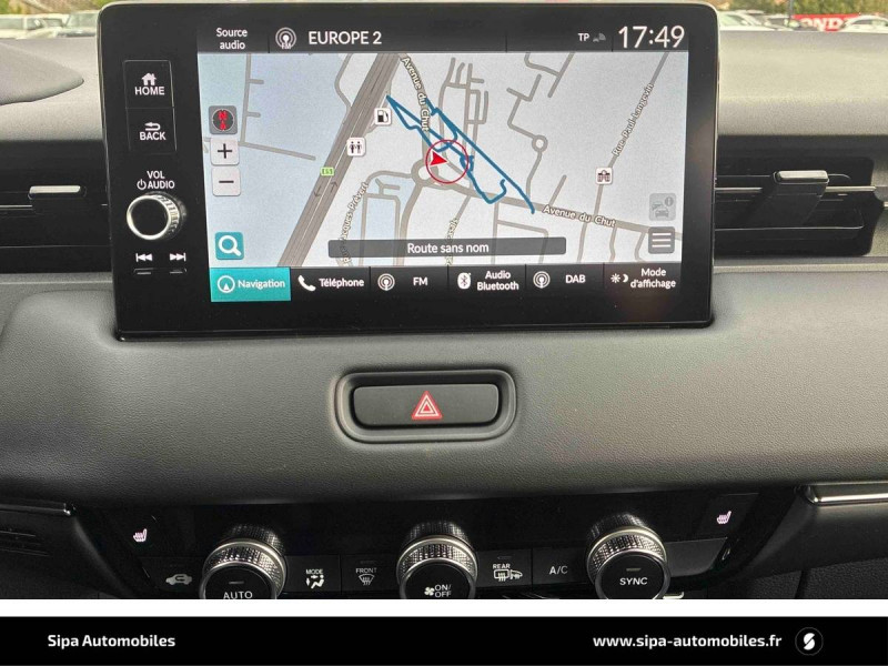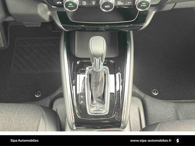 3 Modes de conduite (ECO / NORMAL / SPORT) / 6 HP / Affichage multi-information 7" / Ancrages ISOFIX / I-SIZE / Antenne aileron de requin / Appuis-tête AV anti coup du lapin / Assistance à la conduite dans les embouteillages / Assistance à la stabilité du véhicule (VSA) / Bas de caisse peints en noir avec insert argent / Béquet de hayon / Boîte automate à fonction continue / Calandre couleur carrosserie / Ceintures de sécurité AV et AR avec enrouleur à verrouillage d'urgence (ELR) / Clignotants AV LED séquentiels / Coffre électrique avec fermeture à l'éloignement / Commande de freinage / décélération régénérative (palettes) / Compatibilité My Honda+ / Contrôle de la traction (TCS) / Couleur de rétroviseurs en couleur carrosserie / Coupure automatique du moteur à l'arrêt Auto Stop / Décorations de pare-chocs AV et AR argent / Design jantes alliage 18" Black Cut / Eclairage d'ambiance (plafond) / Eclairage de courtoisie / Eclairage de miroirs de courtoisie (pare-soleils) / Eclairage du coffre / Eclairage du compteur / Faisceau de conduite adaptatif / Feux de virages adaptatifs LED / Frein de stationnement électrique automatique / Garniture d'antibrouillard noire / Garniture noir brillant sur la console AV, inserts argent dans les montants de porte et le tableau de bord / Garniture sur la console AV Noir brillant / Honda CONNECT avec système de navigation (écran tactile 9", AM/FM/DAB, Apple Carplay et Android Auto informations routières en temps réel) / HP - Tweeters AV / Indicateur de perte de pression des pneus / Inserts intérieurs de portes AV Argent / Jantes alliage 18" avec pneus 225 / 50 R18 / Kit de réparation des crevaisons / Liseuse AR / Liseuse AV / Miroirs de courtoisie dans les pare-soleils / Pare-chocs peints - Noir / Pare-soleil conducteur avec miroir de courtoisie et lumière intégrée / Passages de roues noirs / Phares LED / Plage AR (fixée au hayon) / Poignées de porte intérieures argent / Poignées de portes extérieures ton carrosserie / Pommeau de levier de vitesse cuir / Prises USB - 2 AR, type C pour recharge / Prises USB - 2 AV, type A et type C pour recharge / Radars de stationnement (4 capteurs AV et 4 capteurs AR) / Rétroviseur intérieur automatique jour/nuit / Rétroviseurs extérieurs - indexés a la marche AR / Rétroviseurs latéraux chauffants / Rétroviseurs rabattables et fermeture/ouverture des vitres depuis la clé / Revêtement de plafond couleur claire / Sellerie cuir synthétique et tissu (noir) / Signal de freinage d'urgence automatique / Spoiler / Suivi automatique à basse vitesse / Surveillance de la vigilance du conducteur / Système d'alarme / Système d'alerte anticollision frontale / Système d'appel d'urgence (eCall) / Système d'assistance au maintien dans la voie de circulation / Système de déverrouillage et de démarrage sans clé / Système de prévention des collisions par régulation de l'accélérateur (vers l'AV et l'AR) / Système de prévention et d'atténuation des sorties de route / Système de retenue en descente / Système de surveillance de l'angle mort avec alerte de véhicule en approche / Système de temporisation de l'allumage/extinction des feux / Système d'immobilisation électronique / Système d'optimisation du comportement routier AHA (Agile Handling Assist) / Ventilation AR / Volant chauffant