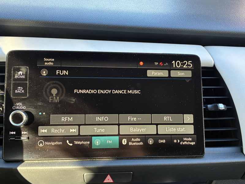 Essuie-glace AV automatique à capteur de pluie / Frein de stationnement électronique avec maintien de freinage / Garnitures intérieures cuir souple / Honda CONNECT avec navigation HERE (Ecran tactile 9", Radio AM/FM/DAB, Apple Carplay sans fil et et Android Auto) / Pack de systèmes avancés d'assistance au conducteur / Phares LED / Pommeau de levier de vitesse cuir / Radars de stationnement 4 capteurs à l'AV et 4 capteurs à l'AR / Signal de freinage d'urgence automatique / Suivi automatique à basse vitesse / Système de coupure automatique du moteur à l'arrêt Auto Stop / 4 HP / Affichage digital multi information / Ancrages ISOFIX / I-SIZE / Antenne aileron de requin / Badge e:HEV / Caméra de recul grand angle avec guides dynamiques / Direction à assistance électrique variable / Eclairage de courtoisie / Feux de route actifs : HSS (Hight beam Support System) / Fonction ECON déconnectable / Kit anti-crevaison / Liseuse AV / Miroirs de courtoisie dans les pare-soleils / Plage AR / Poche aumônière au dos du siège passager / Poignées de portes extérieures couleur carrosserie / Poignées de portes intérieures plaquées / Prise accessoires AV / Prise USB AR (2 x Charge) / Prises USB AV 2 (1 Data & 1 Charge) / Rétroviseurs extérieurs - Fonction recul côté passager / Sortie d'échappement simple / Système d'alarme / Système d'assistance au maintien dans la voie de circulation / Système d'immobilisation électronique / Système de déverrouillage et de démarrage sans clé / Système de feux de route actifs / Système de surveillance de l'angle mort avec alerte de véhicule en approche / Système de temporisation de l'allumage/extinction des feux / Type d'enjoliveur Combiné - 16" / Volant chauffant