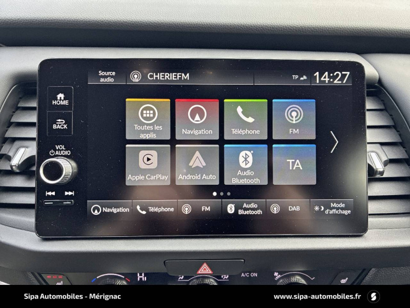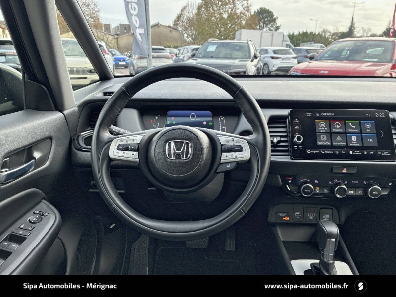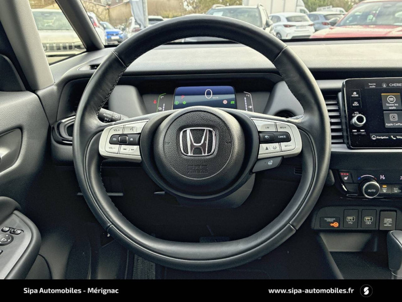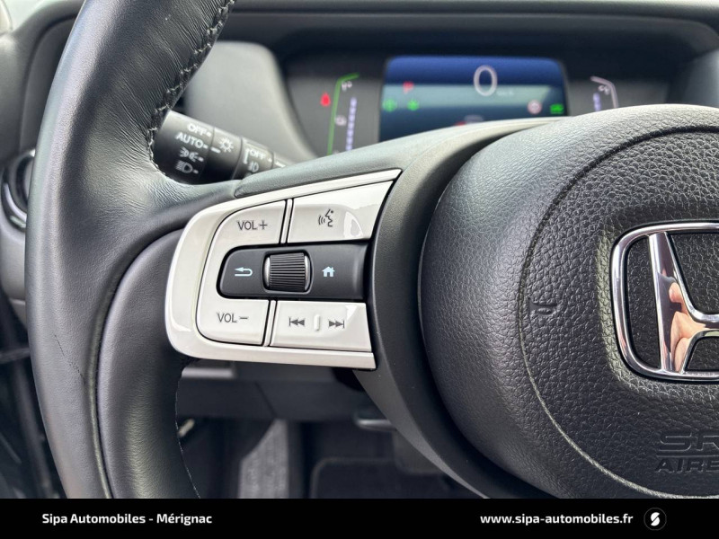 4 HP / Accoudoirs de portes en similicuir / Affichage multi-information 7" / Ajusteur des phares automatiques / Alarme antivol / Alerte anticollision frontale / Antenne type requin / Assistant en embouteillage (TJA) / Aumônières de sièges AV / Calandre Crosstar / Ceintures de sécurité AV et AR à enrouleur à blocage par inertie (ELR) / Clignotants AV LED / Contrôle électronique de trajectoire VSA (Vehicle Stability Assist) / Crochets d'arrimage dans le coffre / Direction à assistance électrique - Rapport de vitesse variable / eCall (Europe) / Eclairage d'ambiance blanc (plafond) / Eclairage de courtoisie / Eclairage du coffre / Finition des poignées de porte extérieures - noir / Fonctions de la clé plip - Rétroviseurs et vitres / Frein de stationnement électronique avec maintien du frein automatique / Habillage exclusif (emplacement)-Pare-chocs AV et AR, antibrouillards, garnitures d'aile et de bas de caisse exclusifs Crosstar / Honda CONNECT avec système de navigation (écran tactile 9", AM/FM/DAB, Apple Carplay et Android Auto informations routières en temps réel) / Jantes alliage 16" Crosstar anthracite / Kit de réparation des crevaisons / Liseuse AV / Logo e:HEV / Minuterie marche/arrêt automatique des phares (Fonction Retour à la maison/Quitter la maison) / Miroirs de courtoisie dans les pare-soleils / Pédales noirs / Phares LED / Plage AR / Pneus 185/60 R16 86H / Points de fixation de siège enfant ISO Fix / I-SIZE / Pommeau de levier de vitesse cuir / Prise accessoires AV / Prises USB AV 2 (1 Data & 1 Charge) / Prise USB AR (2 x Charge) / Sellerie Tissu déperlant/Similicuir / Signal d'arrêt d'urgence / Style Crosstar (pare-chocs AV et AR / garniture/ antibrouillard AV / sabots et bas de caisse argentés) / Suivi du véhicule précédent à basse vitesse / Système d'assistance au maintien dans la voie de circulation LKAS (Lane Keeping Assist System) / Système d'atténuation de sortie de voie (RDM) / Système de déverrouillage et de démarrage sans clé / Système de feux de route actifs HSS (Highbeam Support System) / Système de notification du démarrage du véhicule précédent / Système de reconnaissance des panneaux de signalisation TSR (Traffic Sign Recognition) / Système d'optimisation du comportement routier AHA (Agile Handling Assist) / Volant chauffant