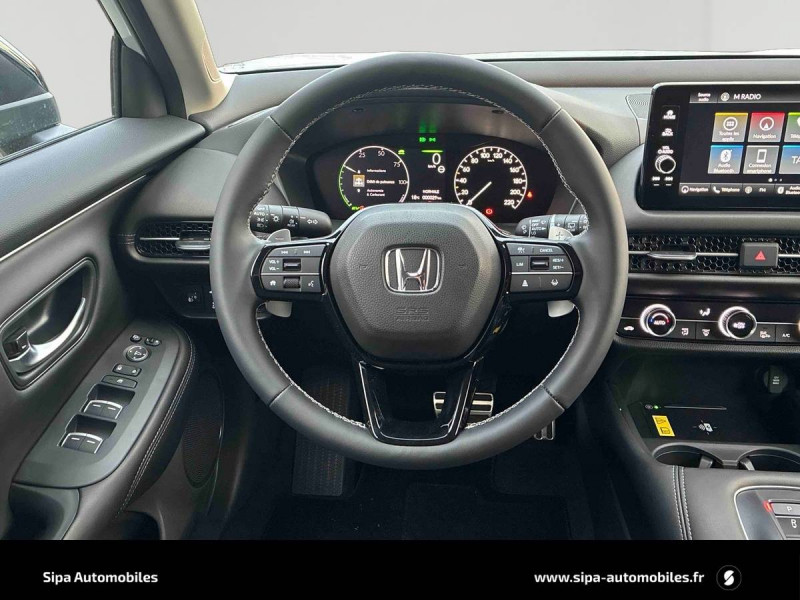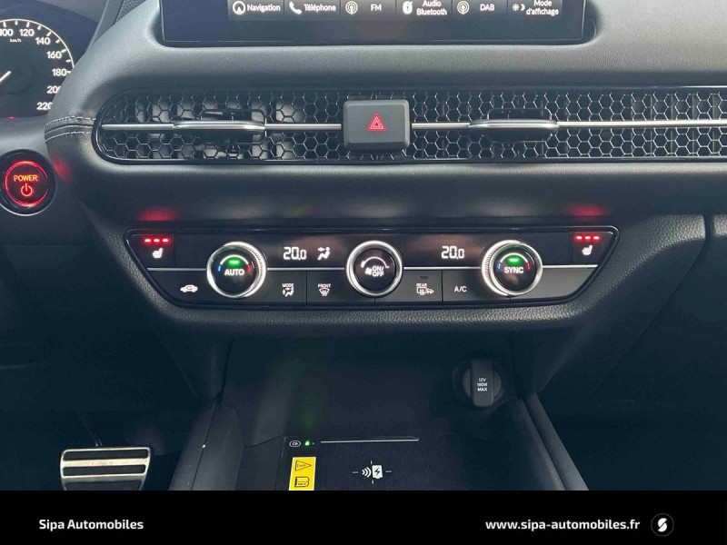 4 Modes de conduite (ECO/NORMAL/SNOW/SPORT) / 8 HP / Affichage multi-information 7" / Ancrages ISOFIX / I-SIZE / Antenne aileron de requin couleur carrosserie / Assistance à la conduite dans les embouteillages / Boîte automate à fonction continue / Cache-bagages à enrouleur / Calandre AV nid d'abeille - Noir / Ceintures de sécurité AV et AR avec enrouleur à verrouillage d'urgence (ELR) / Chargeur sans fil / Clignotants AV et AR à LED / Coffre électrique avec détection de pied et fermeture à l'éloignement / Commande de freinage / décélération régénérative (palettes) / Compartiment pour lunettes / Contrôle de la traction (TCS) / Design Pare-chocs AV Sport / Déverrouillage des portes paramétrables / Eclairage d'ambiance blanc (espace aux pieds AV) / Eclairage d'ambiance blanc (plafond) / Eclairage de courtoisie / Eclairage de miroirs de courtoisie (pare-soleils) / Eclairage du coffre / Fixations de filet à bagages / Fonction ECON déconnectable / Frein de stationnement électrique automatique / Garnitures de fenêtres (haute brillance) / Honda CONNECTavec Navigation (Ecran tactile 9", radio AM / FM / DAB, Apple Carplay et Android Auto) / HP - Tweeters AV / Indicateur de perte de pression des pneus / Inserts intérieurs cuir souple synthétique noir avec surpiqures en argent / Kit de réparation des crevaisons / Liseuse AV / Miroirs de courtoisie dans les pare-soleils / Pare-chocs inférieurs AV et AR Noir avec vernis foncé métallisé / Pédalier sport / Phares LED / Pneumatiques 225/50 R18 / Poches aumônières siège conducteur / Poches aumônières siège passager / Poignées de porte intérieures chrome platine / Poignées de portes extérieures couleur carrosserie / Prise accessoire (AV & Coffre) / Radars de stationnement 4 capteurs à l'AV et 4 capteurs à l'AR / Rétroviseur intérieur automatique jour/nuit / Rétroviseurs extérieurs - Indexés à la marche AR / Sellerie cuir synthétique et tissu (noir) / Siège conducteur - Réglages électriques (8 voies) / Siège passager AV - Réglages électriques (4 voies) / Signal de freinage d'urgence automatique / Sortie d'échappement chromée / Sous coffre / Suivi automatique à basse vitesse / Système d'alarme / Système d'alerte anticollision frontale / Système d'appel d'urgence (eCall) / Système d'assistance au maintien dans la voie de circulation / Système de déverrouillage et de démarrage sans clé / Système de feux de route actifs / Système de prévention des collisions par régulation de l'accélérateur (vers l'AV et l'AR) / Système de temporisation de l'allumage/extinction des feux / Système d'immobilisation électronique / Système d'optimisation du comportement routier AHA (Agile Handling Assist) / Tableau de bord et console avec surpiqués argent / Ventilation AR / Vitres - Télécommandés