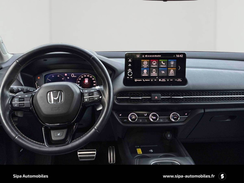 12 HP / 4 Modes de conduite (ECO/NORMAL/SNOW/SPORT) / Affichage multi-information 10,2" / Ancrages ISOFIX / I-SIZE / Antenne aileron de requin couleur carrosserie / Assistance à la conduite dans les embouteillages / Cache-bagages à enrouleur / Calandre AV verticale - Noir / Ceintures de sécurité AV et AR avec enrouleur à verrouillage d'urgence (ELR) / Chargeur sans fil / Clignotants AV et AR à LED / Coffre électrique avec détection de pied et fermeture à l'éloignement / Commande de freinage / décélération régénérative (palettes) / Compartiment pour lunettes / Déverrouillage des portes paramétrables / Eclairage d'ambiance blanc (espace aux pieds AV) / Eclairage d'ambiance blanc (plafond) / Eclairage d'ambiance blanc (poignées de porte) / Eclairage de courtoisie / Eclairage de miroirs de courtoisie (pare-soleils) / Eclairage du coffre / Fixations de filet à bagages / Fonction ECON déconnectable / Frein de stationnement électrique automatique / Garnitures de fenêtres (faible brillance) noir brillant / Honda CONNECTavec Navigation (Ecran tactile 9", radio AM / FM / DAB, Apple Carplay et Android Auto) / HP central AV / HP Subwoofer / HP - Tweeter AV / Inserts intérieurs de portes AR similicuir et plastique noir / Inserts intérieurs de portes AV similicuir surpiqué argenté et plastique noir / Jantes alliage 18" bicolores diamantées / Kit de réparation des crevaisons / Liseuse AV / Miroirs de courtoisie dans les pare-soleils / Pédalier sport / Phares d'angle / Phares LED / Pneumatiques 225/50 R18 / Poches aumônières siège conducteur / Poches aumônières siège passager / Poignées de porte intérieures chrome platine / Poignées de portes extérieures couleur carrosserie / Prise accessoire (AV & Coffre) / Radars de stationnement 4 capteurs à l'AV et 4 capteurs à l'AR / Rétroviseur intérieur automatique jour/nuit / Rétroviseurs extérieurs - Indexés à la marche AR / Sellerie cuir véritable noir (intérieur des sièges) et synthétique (flancs et appuie-têtes) / Siège conducteur - Réglages électriques (8 voies) / Siège passager AV - Réglages électriques (4 voies) / Signal de freinage d'urgence automatique / Sortie d'échappement chromée / Sous coffre / Suivi automatique à basse vitesse / Système audio Premium BOSE / Système d'alarme / Système d'alerte anticollision frontale / Système d'appel d'urgence (eCall) / Système d'assistance au maintien dans la voie de circulation / Système de déverrouillage et de démarrage sans clé / Système de feux de route actifs / Système de feux de route adaptatif / Système de prévention des collisions par régulation de l'accélérateur (vers l'AV et l'AR) / Système de temporisation de l'allumage/extinction des feux / Système d'immobilisation électronique / Système d'optimisation du comportement routier AHA (Agile Handling Assist) / Tableau de bord et console avec surpiqués argent / Ventilation AR / Vitres - Télécommandés / Volant chauffant
