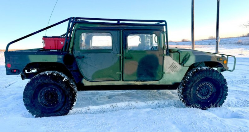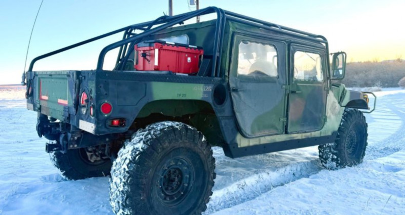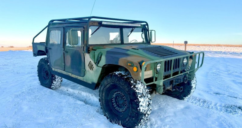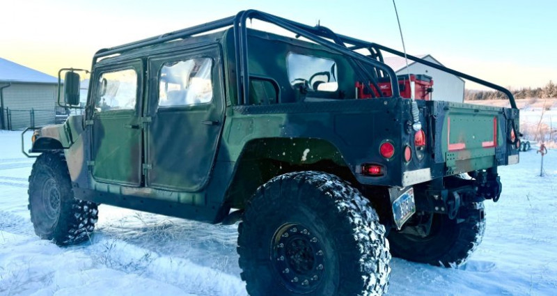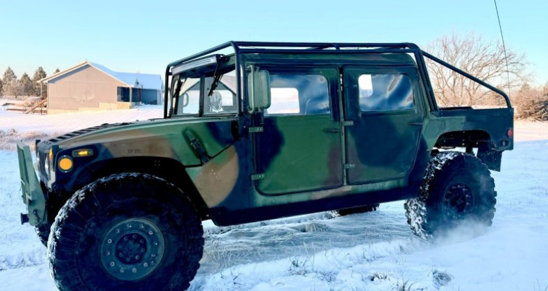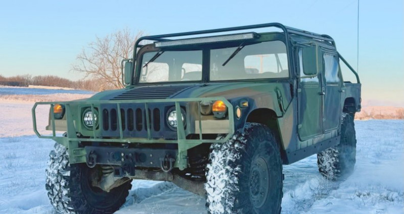 - Année : 1994 - Constructeur : AM General - Modèle : M998A1 HMMWV - Moteur : 6.2L Detroit Diesel - Boîte de vitesses : Automatique, 3-vitesse - Transmission : 4WD - Type de corps : Véhicule utilitaire militaire - Couleur extérieure : Vert militaire - Couleur intérieure : Noir - Pneus : (4) 41.5x13.50R16.5 Pit Bull Rocker XOR radials + 1 roue de remorque correspondante avec roue + jeux d'inserts en PVC (pneus run-flats retirés) + kit d'O-ring pour roues HMMWV avec vis de flange et vis de soupapes. Provenance : Nebraska. Disponibilité : environ 7 semaines, clés en main. 40 000 € tout compris (importation, taxes, procédure d'immatriculation). Annonce publiée le 10/12/2025