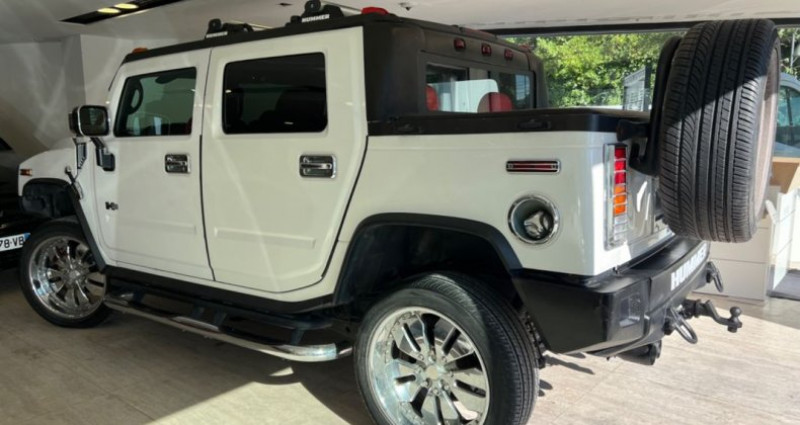 HUMMER H2 34CV 325CV SUT, pick-up, blanc, 5 portes, première mise en circulation le 01/05/2003, garantie : vente a marchand sans garantie. Prix TTC : 29 990 € OPTIONS ET ÉQUIPEMENTS : Conduite : - Suspension renforcée Extérieur : - Jantes/roues en alliage léger 22 - Pack aluminium mat - Rétroviseur extérieur électrochrome - Sorties d'échappement chromées - Toit ouvrant panoramique Intérieur : - Accoudoir avant - Climatisation automatique - Direction assistée - Intérieur cuir étendu - Non fumeur - Pack cuir - Prise 12V - Volant en cuir - Volant et pommeau cuir Pack : - Fermeture électrique - Frein de parking automatique - Tableau de bord en cuir - Verrouillage centralisé - Échappement inox - Échappement sport Sellerie : - Sièges en cuir Sécurité : - Alarme - consommation extra urbaine: 0.00l/100 - consommation urbaine: 0.00l/100 - consommation mixte: 0.00l/100 Malgré le soin que nous apportons dans la rédaction de nos annonces, des erreurs de saisie restent possibles. Nous vous rappelons que celles-ci ne sont pas contractuelles et restons à votre écoute pour valider ensemble les caractéristiques - ** S'ASSURER DE LA DISPONIBILITE AVANT DE VOUS DEPLACER ** Attention, pour un accueil personnalisé de notre clientèle, nous recevons dans nos locaux EXCLUSIVEMENT SUR RENDEZ-VOUS. - Spécialiste Automobile / Prestige & Collection Neufs & Occasions Toutes marques jusqu'à -40% Achat / Vente / Dépôt-vente / Financement - * ESTIMATION GRATUITE > En vue d?un dépôt vente ou d?une reprise * FINANCEMENT POSSIBLE AVEC OU SANS APPORT JUSQU'A 84 MOIS * REPRISE ou RACHAT CASH * LIVRAISON DANS TOUTE LA FRANCE SUR DEVIS Commissions d?agence non incluses - ELITE MOTORS Showroom Autos : - 1390 AVENUE DU CAMPON, 06110 CANNES - ** Ouverture du Lundi au samedi *** de 09h00 à 12h00 et de 14h00 à 18h00. Référence annonce : 3784