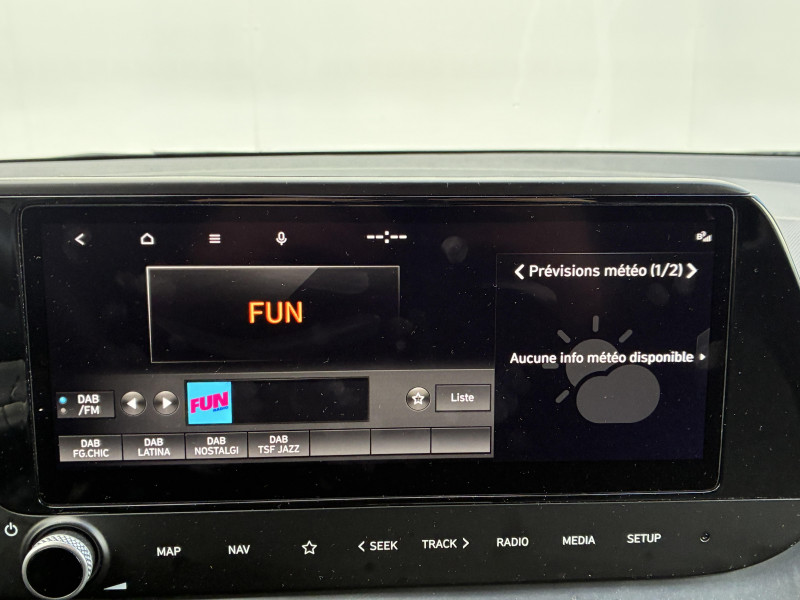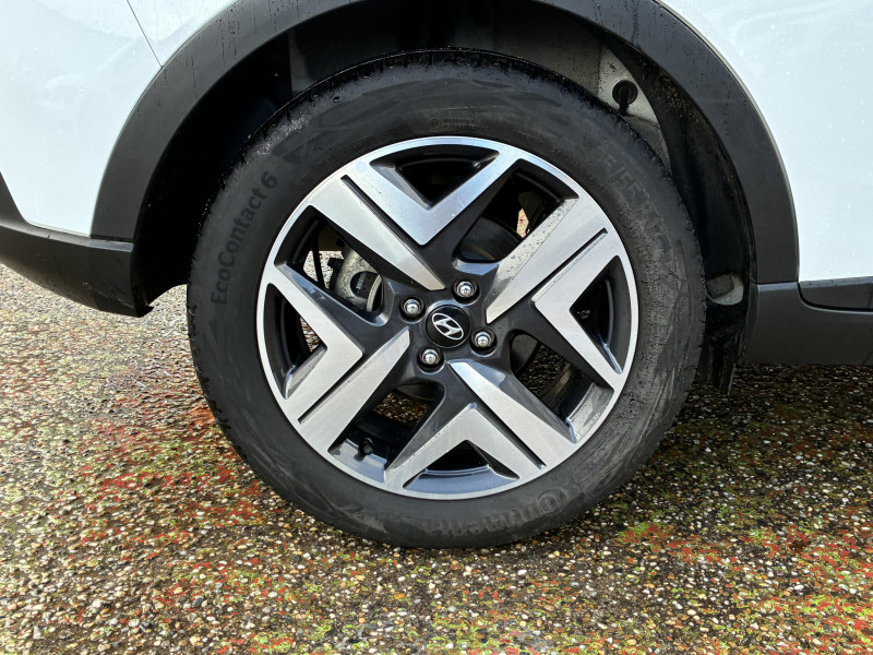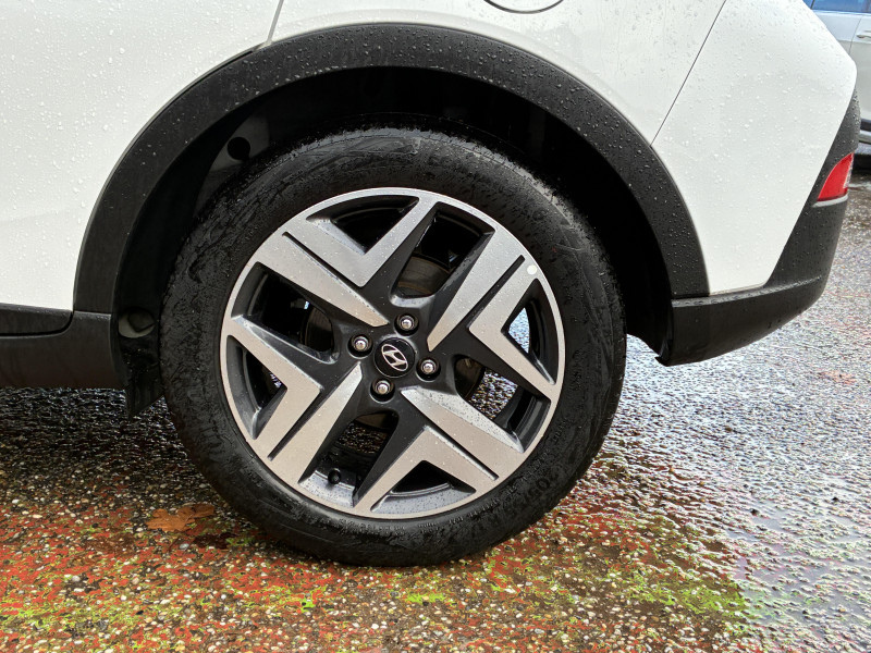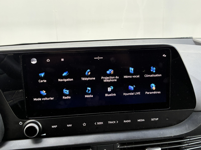 Climatisation automatique avec capteur désembuage automatique / eCall : appel d'urgence automatique aux services de secours avec géolocalisation du véhicule / Feux AV bi-LED avec éclairage additionnel en virage / Navigation Europe avec mise à jour de la cartographie / Rétroviseur intérieur jour/nuit automatique / Services connectés BlueLink avec carte SIM incluse Transmission de destination au système de navigation à distance - Géolocalisation du véhicule - Historique des trajets - Statut du véhicule (portes, moteur, ventilation) - Diagnostic. Services télématiques offerts pendant 5 ans - Les fonctionnalités à distance s'effectuent via une application depuis un téléphone compatible, hors frais de connexion / Services connectés Hyundai Live Information trafic, prix des carburants, emplacements de stationnement, météo, points d'intérêt / Verrouillage automatique des portes en roulant / Volant et levier de vitesses gainés de cuir / 2 HP + 2 tweeters (AV) / 2 HP AR / Accès mains-libres et démarrage sans clé / Airbags frontaux conducteur et passager (déconnectable côté passager) / Alerte de débouclage de la ceinture de sécuritéà toutes les places / Alerte de présence de passager AR / Calandre noir laqué / Chargeur sans fil pour téléphone compatible / Compteurs numériques 10.25" / Console de rangement sous accoudoir AV / Contrôle de trajectoire électronique (ESP & VSM) / Détection de fatigue du conducteur / Eclairage d'accueil et d'accompagnement / Eclairage d'ambiance / Ecran couleur tactile 10.25" / Feux de route intelligents / Filet de coffre / Freinage d'urgence autonome avec reconnaissance piétons et cyclistes / Intérieur bi-ton noir et gris clair (sauf coloris extérieur Mangrove Green) / Intérieur noir avec inserts décoratifs et surpiqure Safari Green (avec coloris extérieur Mangrove Green uniquement) / Jonc de vitres chromé / Plancher de coffre modulable / Poche aumônière dans le dossier du siège passager AV / Port USB de recharge à l'AR / Port USB de recharge à l'AV / Porte-gobelets AV / Réception radio numérique terrestre (DAB) / Système audio RDS compatible MP3 avec connexion USB / Système ISOFIX aux places latérales AR / Sécurité enfants sur portes AR / Vitre électrique séquentielle côté conducteur